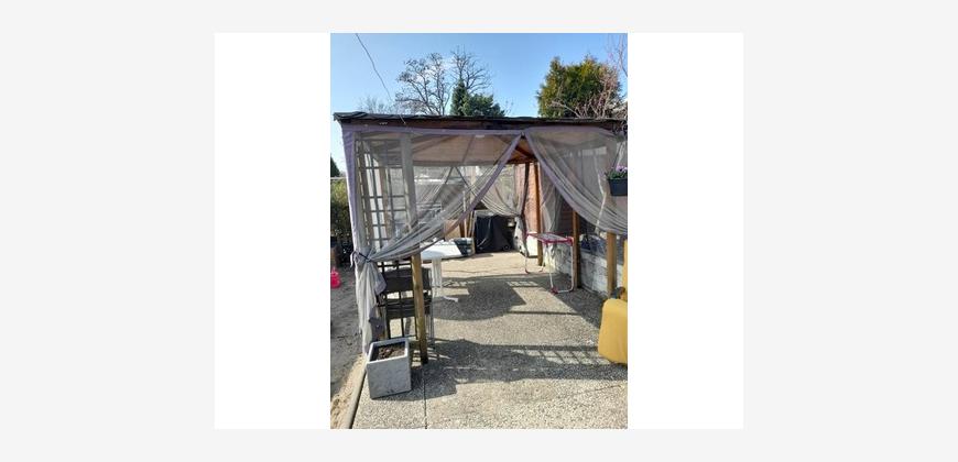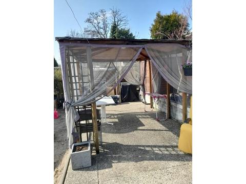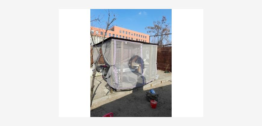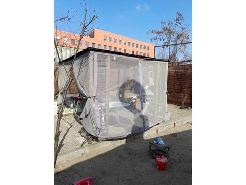 Das kleine Gartenhaus, verfügt über ein Schlafzimmer, einer Wohnküche und einem Wc mit Warm- sowie kaltem Wasser.