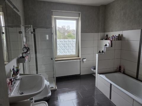 -Neues Badezimmer mit Wanne, Dusche und Fenster