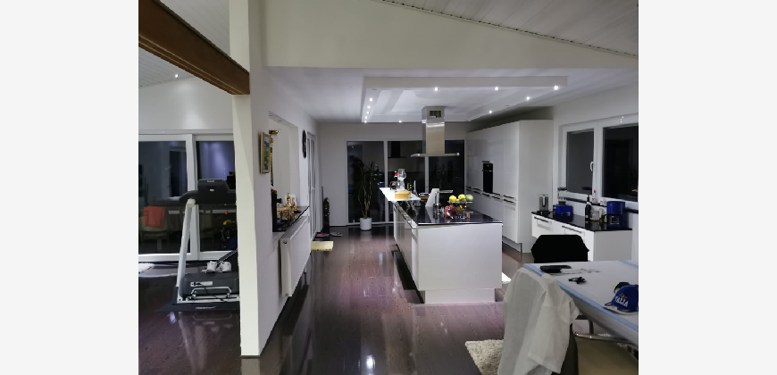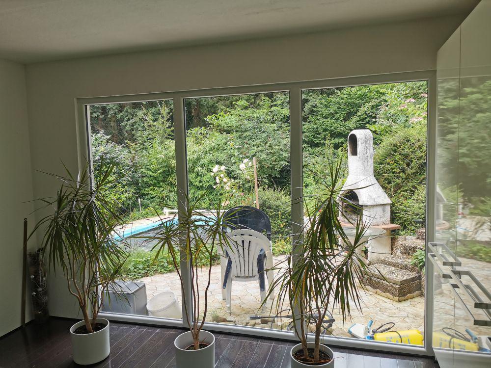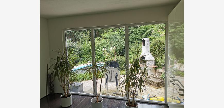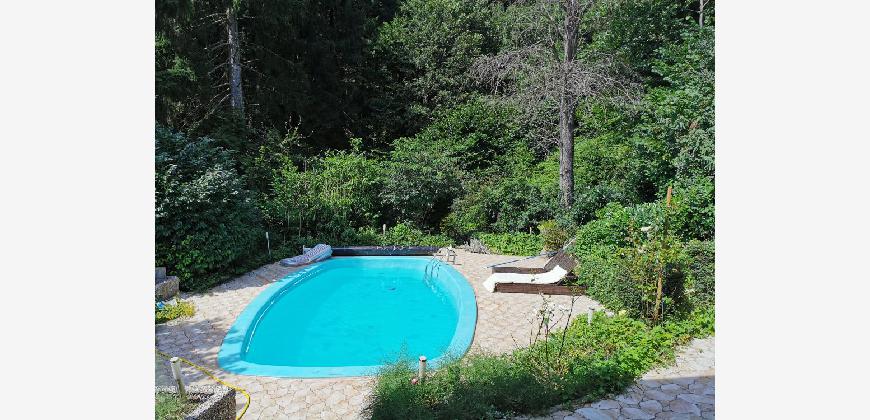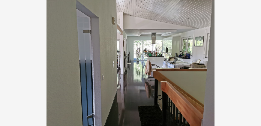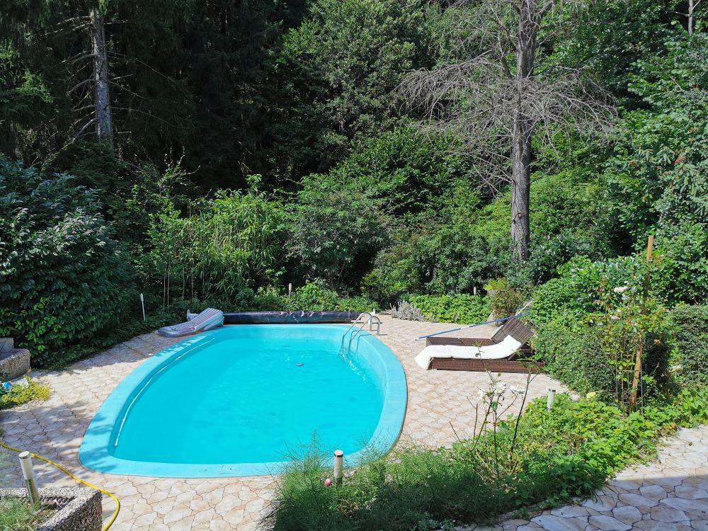 Objektbeschreibung: Bei dem zweistöckigen Einfamilienhaus handelt es sich um eine sehr attraktive und nicht alltägliche Immobilie in Toplage, die durch eine sehr gute Innenausstattung besticht. Das Objekt besteht aus 6 hübschen Zimmern, zwei Badezimmern, eine Sauna, Aussenschwimmbad und riesen Grundstück. Das Haus wurde 1972 erbaut und wird durch eine Zentralheizung und einen schönen Kamin beheizt. Praktischerweise gibt es auch einen kleinen Keller mit Waschraum und 2 Speicher im Dach.