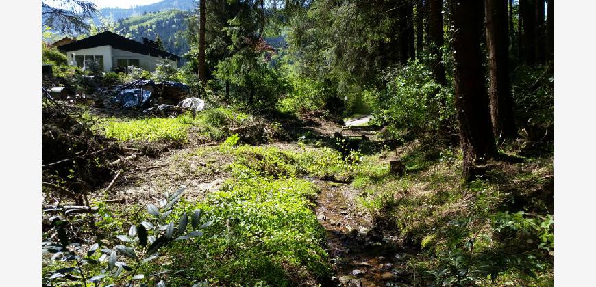 Die gesamte gut besonnte Grundstücksfläche von 4138 m2 setzt sich aus 6 aneinandergrenzenden Flurstücken und einem gegenüberliegenden Flurstück.