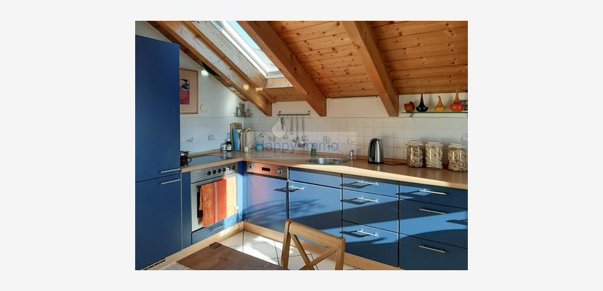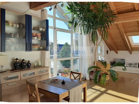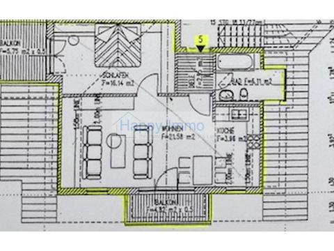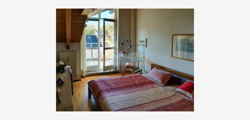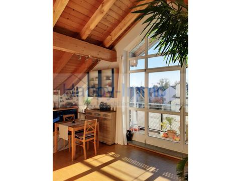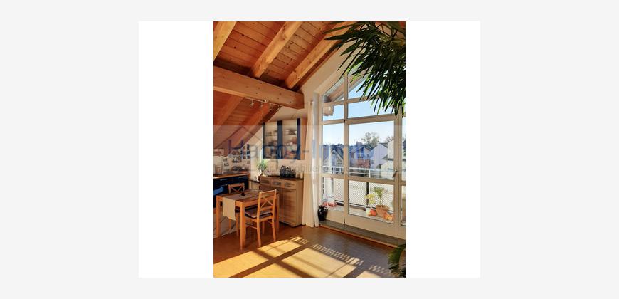 Vom Flur erreichen Sie das Wohnzimmer mit offenem Küchenbereich und das Bad mit Wanne. Das Schlafzimmer ist vom Wohnzimmer aus begehbar und verfügt ebenso wie das Wohnzimmer über eine Balkon. Begeistern wird Sie neben dem Sichdachstuhl auch der große Balkon.
