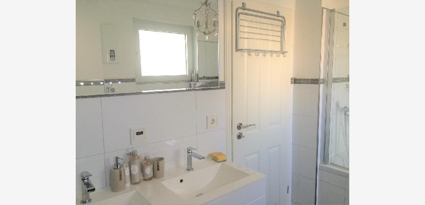 Die Wohn- und Schlafräume sind mit Designermöbel ausgestattet. Das Wohnzimmer verfügt über einen Smart-TV. Für Bürotätigkeiten gibt es eine Arbeitsecke mit Schreibtisch und Bürostuhl. Die preisgekrönte Designereinbauküche beinhaltet namhafte Geräte wie Herd, Backofen, Spülmaschine, Kühlschrank und Waschmaschine. Hier finden Sie neben diversen Küchen- und Haushaltsgeräten auch Geschirr und Gläser für Sie und Ihre Gäste.