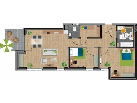 Mehr als 140 Wohnungen unterschiedlicher Größe sind hierbei entstanden und bieten mit verschiedensten Wohnungsgrößen von ca. 52 bis ca. 126 m2 für jede Lebenssituation das passende, bedarfsgerechte Angebot für jung und alt.