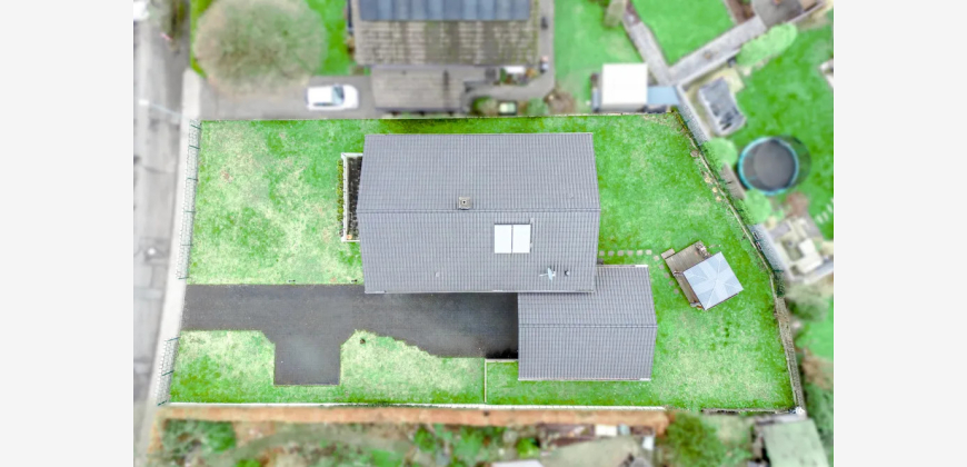 Der Garten umschließt das Haus und bietet neben der Hauptterrasse am Wohnzimmer eine weitere Terrasse im rückwärtigen Bereich. Die Außenflächen ermöglichen verschiedene Nutzungsmöglichkeiten – von Erholung bis Freizeitgestaltung.