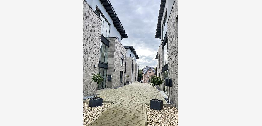 Alle Fenster sind 3-fach-verglast, berücksichtigt ist ein Wärmeschutz gemäß ENEV 2016. Die 1. OG-Wohnung ist ausgestattet mit einer Tür-Farbvideosprechanlage. Schlafzimmer und Wohnzimmer sind mit LAN- und SAT-TV-Anschlüssen ausgestattet. Elektrische Rollläden schützen gegen starke Sonneneinstrahlung. Die Böden bestehen außerhalb des gefliesten Flurbereiches aus qualitativem Laminat.