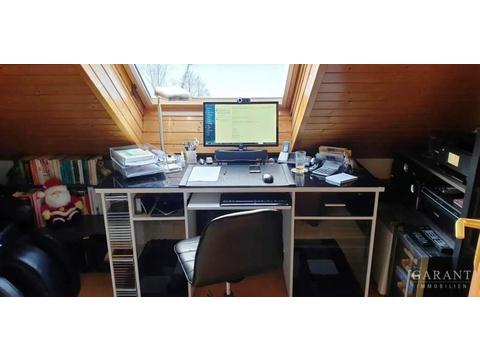 Das Schlafzimmer bietet eine ruhige Atmosphäre mit Blick ins Grüne. Ein weiteres Zimmer eignet sich flexibel als Gäste-, Arbeits- oder Ankleidezimmer.