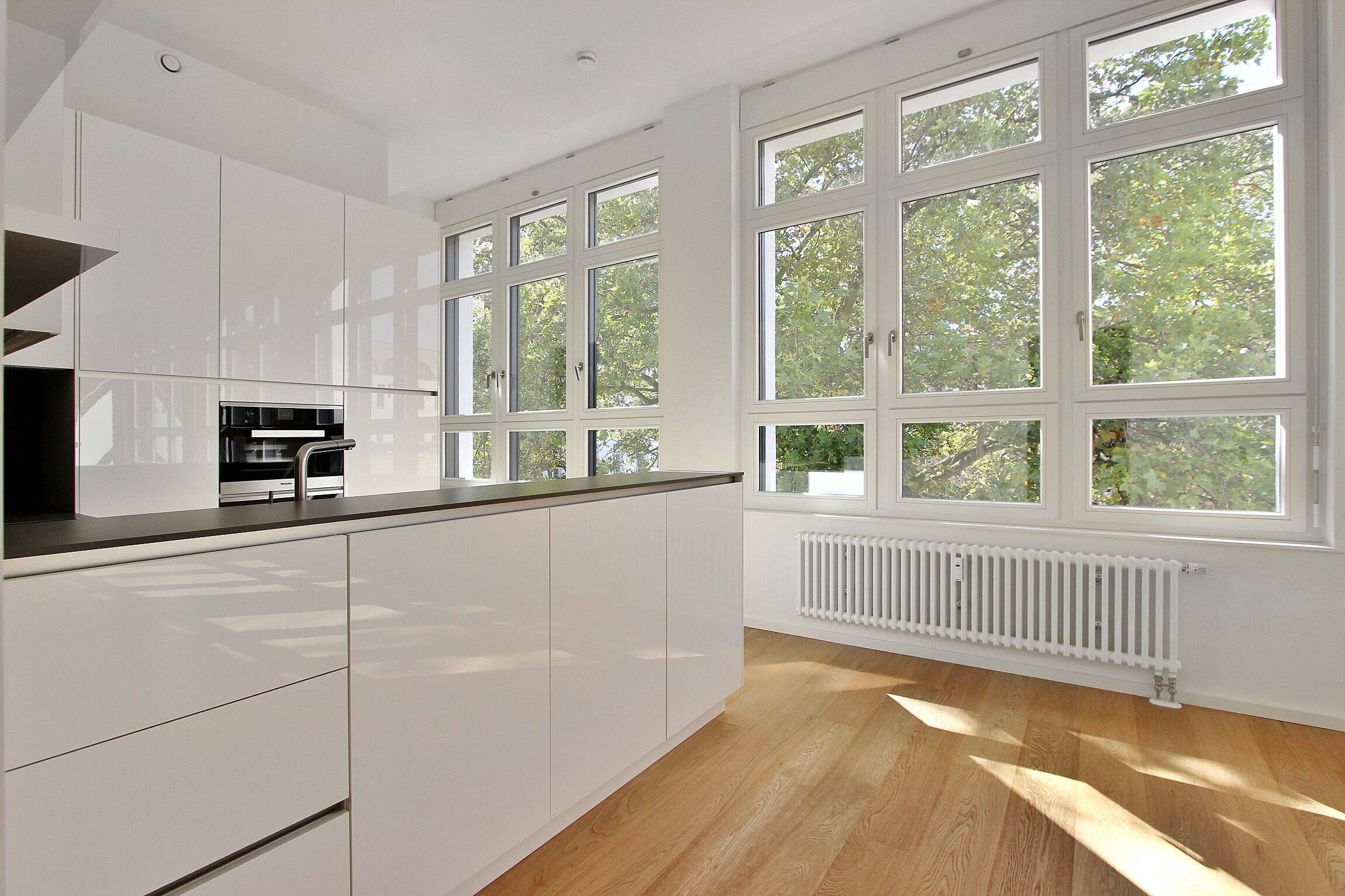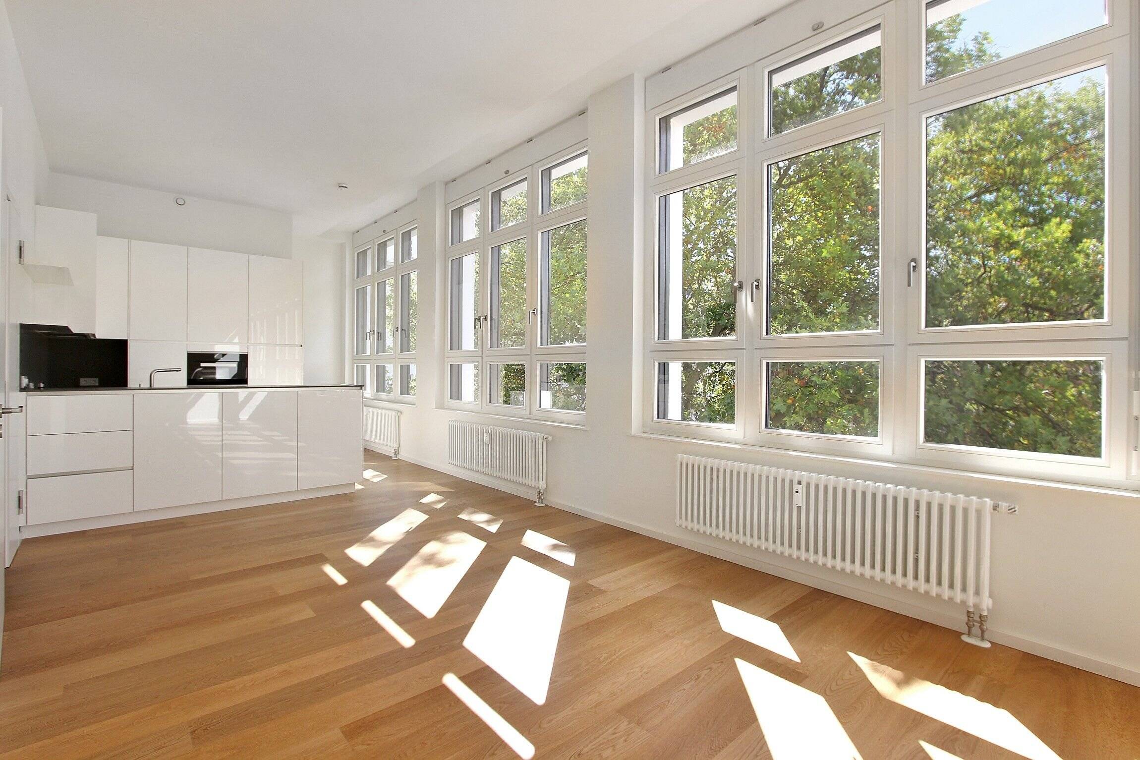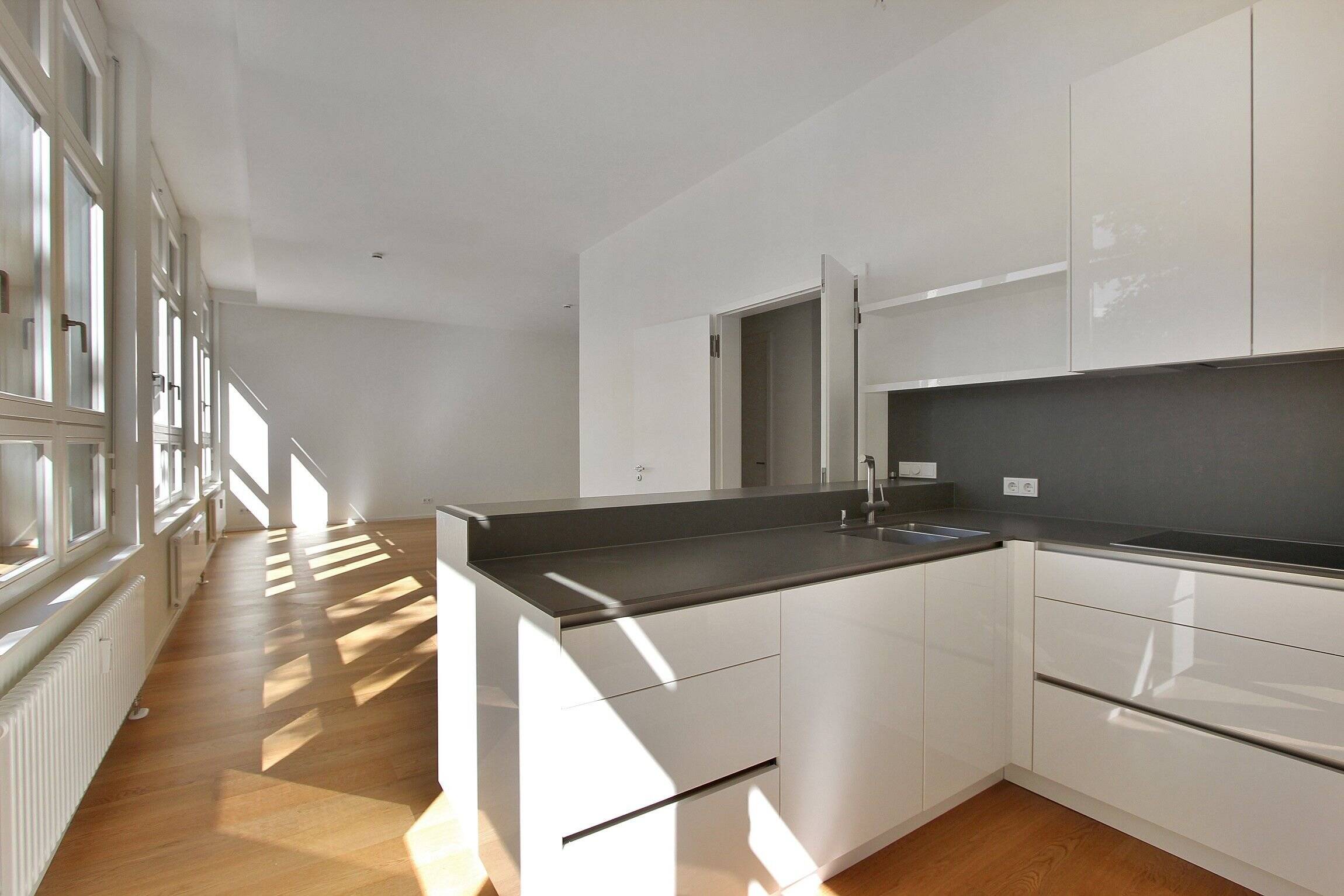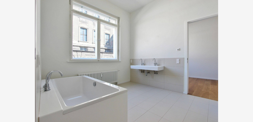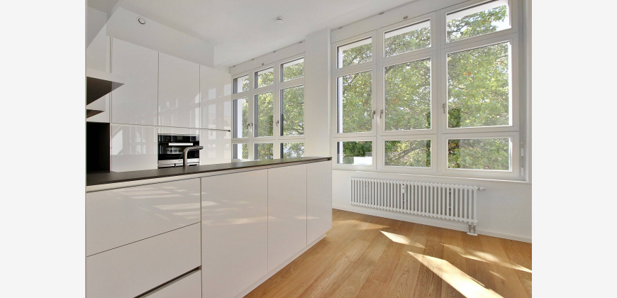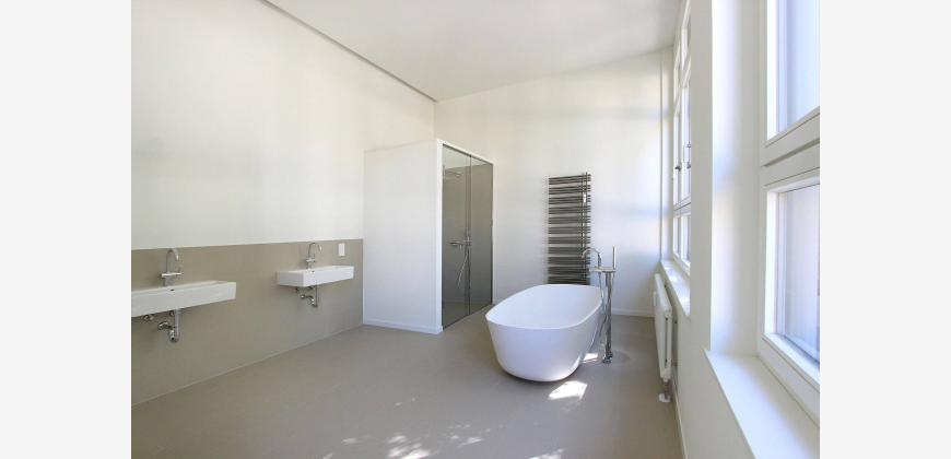 Diese außergewöhnliche Maisonette-Wohnung vereint auf faszinierende Weise moderne Architektur mit luxuriösem Wohnkomfort und lässt keine Wünsche offen. Das klare, minimalistische Design von Sir David Chipperfield zeigt sich in jedem Detail und schafft eine harmonische Atmosphäre, die sowohl stilvoll als auch funktional ist. Beim Betreten der Wohnung wird man sofort von der großzügigen Raumaufteilung und den beeindruckenden Deckenhöhen bis zu 3,70 Metern erfasst, die eine luftige und offene Stimmung vermitteln. Große Fensterfronten fluten die Räume mit natürlichem Licht und bieten einen ungehinderten Blick in die Umgebung. Die südlich ausgerichtete Dachterrasse ist ein wahres Highlight dieser Wohnung und lädt dazu ein, die Sonne in privatem Ambiente zu genießen und den Tag ausklingen zu lassen. Sie ist perfekt für gemütliche Stunden im Freien oder zum Entspannen mit Blick über die Stadt. Die luxuriösen Schlafzimmer mit en-suite Bädern und einem großzügigen, begehbaren Ankleidebereich bieten höchsten Komfort und Privatsphäre. Die klaren Linien und die schlichte Eleganz der Ausstattung, kombiniert mit hochwertigen Materialien wie Dielenfußböden aus Natur-Eiche und fein gespachtelten Wänden, verleihen der Wohnung eine zeitlose Schönheit. Die edlen Einbauküchen sind mit modernsten Geräten ausgestattet und bieten genügend Raum für kulinarische Entfaltung. Die Bäder überzeugen durch exklusive Materialien und eine Ausstattung, die keine Wünsche offenlässt. Diese Maisonette-Wohnung bietet nicht nur luxuriösen Wohnraum, sondern auch eine einmalige Gelegenheit, in einem architektonisch anspruchsvollen Ambiente zu leben, das sowohl moderne Eleganz als auch außergewöhnlichen Komfort vereint.