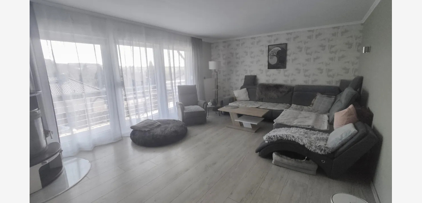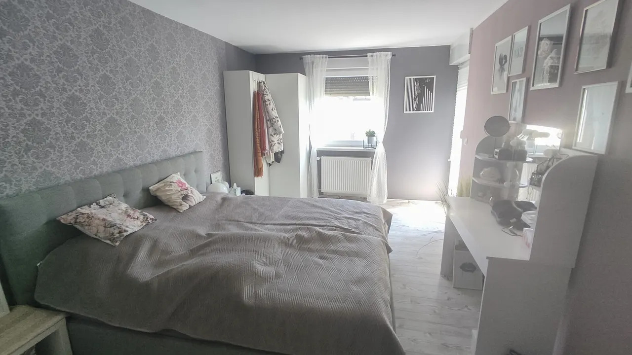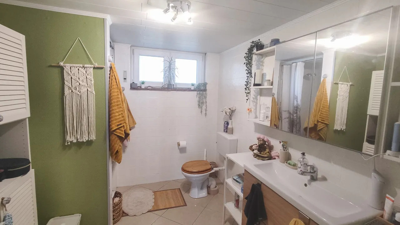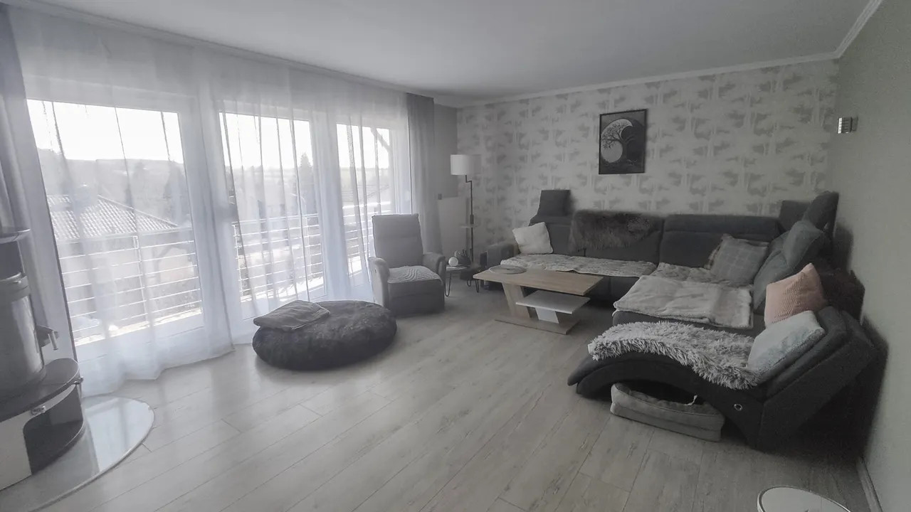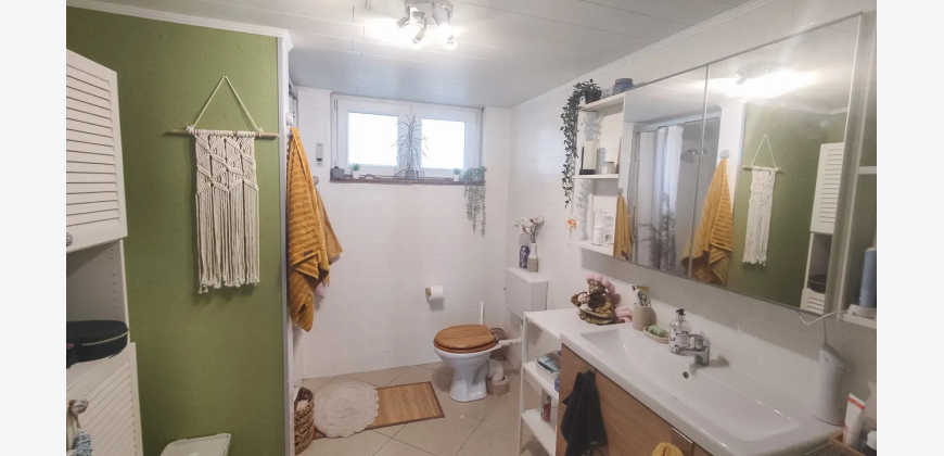 Die durchdachte Raumaufteilung überzeugt: Im Erdgeschoss erwartet Sie die Hauptwohnung mit hellem Wohnzimmer, Essbereich, Schlafzimmer, Küche, Bad und Hauswirtschaftsraum. Ein großzügiger Balkon mit schönem Ausblick sorgt für entspannte Stunden.