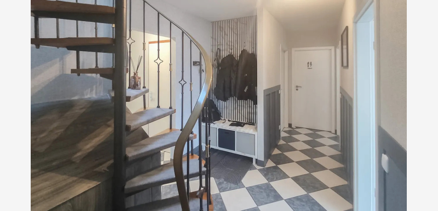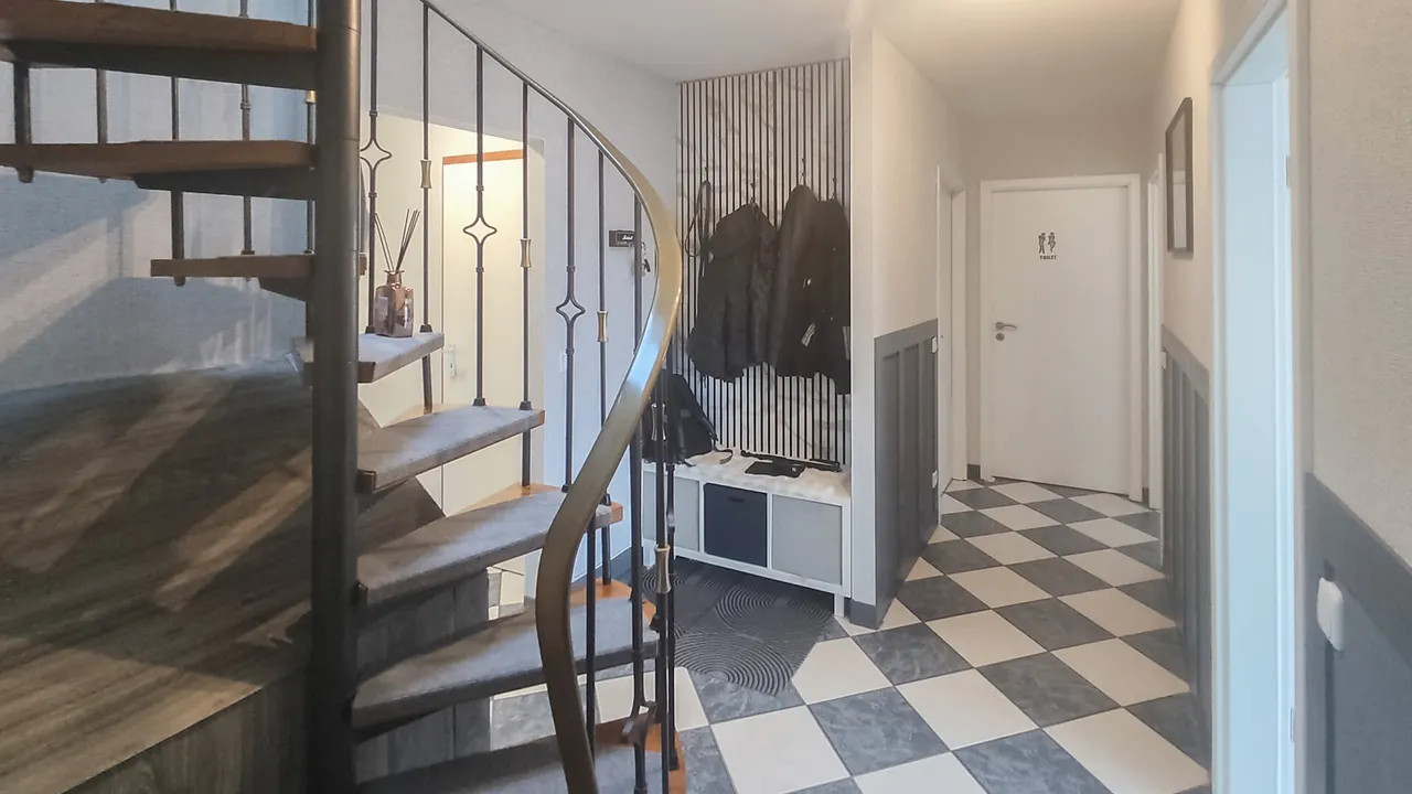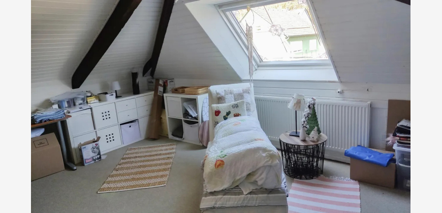 Im Untergeschoss befindet sich eine separate Wohneinheit mit Wohnzimmer, Schlafzimmer, Küche und Bad – perfekt für Gäste oder Familienangehörige. Das Dachgeschoss ergänzt das Raumangebot um ein flexibel nutzbares Gästezimmer.