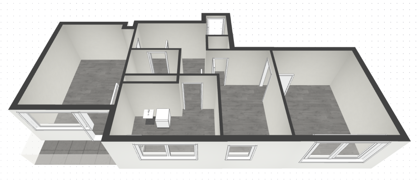 •Großes Esszimmer, optional als drittes Zimmer abtrennbar
