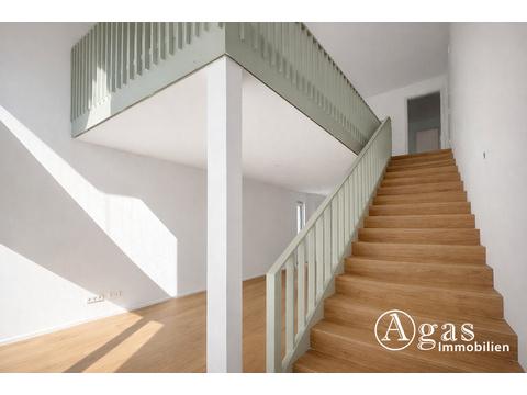Bereits beim Eintreten spürt man die Großzügigkeit dieser besonderen Wohnung. Der offen gestaltete Wohn- und Essbereich mit Galerie schafft ein luftiges Raumgefühl und wird durch große Fensterflächen hervorragend belichtet. Hochwertige Eichendielen, stilvolle Holzfenster sowie eine angenehme Fußbodenheizung sorgen für ein behagliches Wohnambiente auf beiden Ebenen.