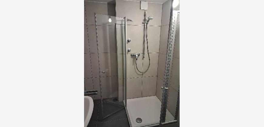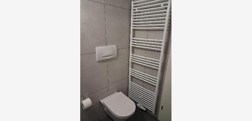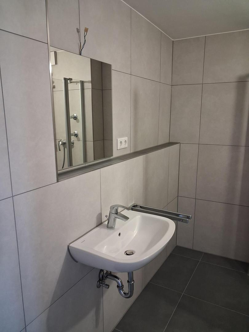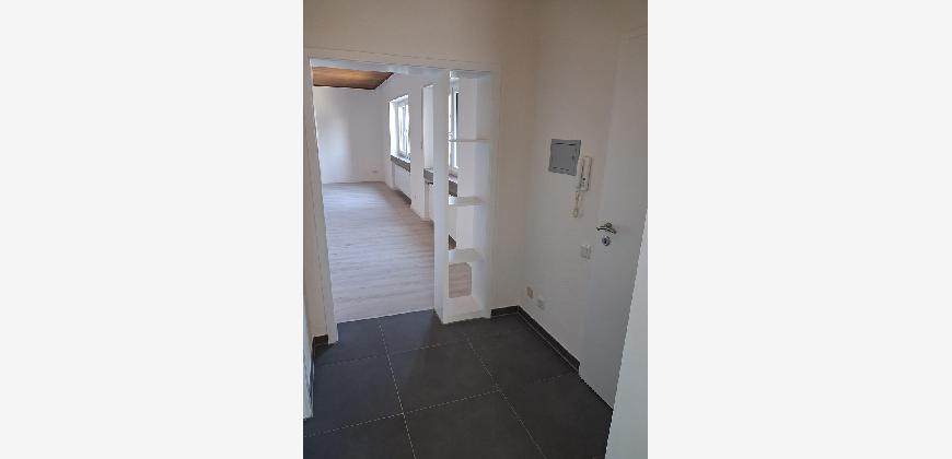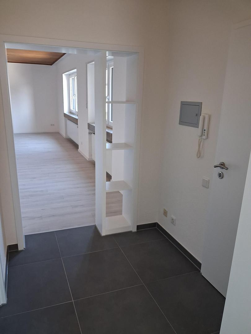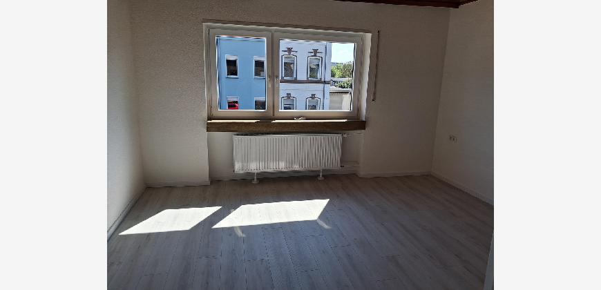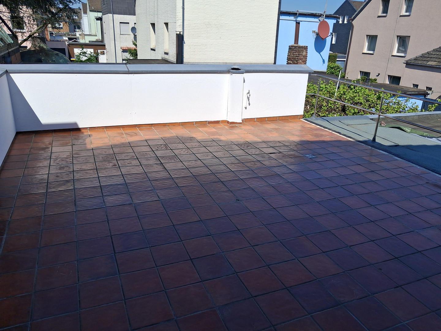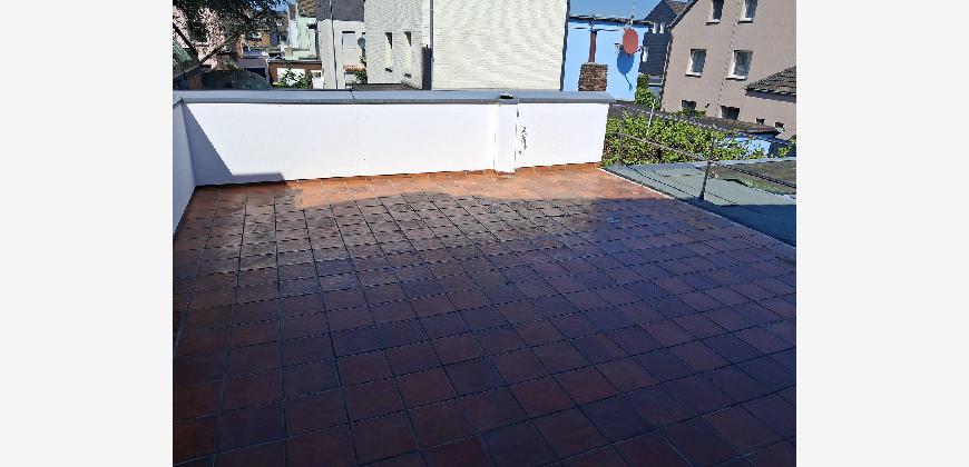 Vollständig saniert, Laminat im Wohnzimmer und Schlafzimmer, Fliesen in Küche, Diele und neuem Duschbad. Große Dachterrasse.
