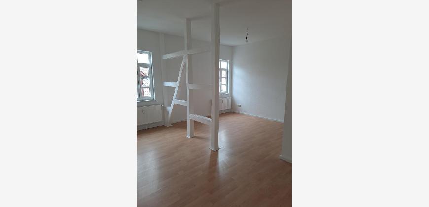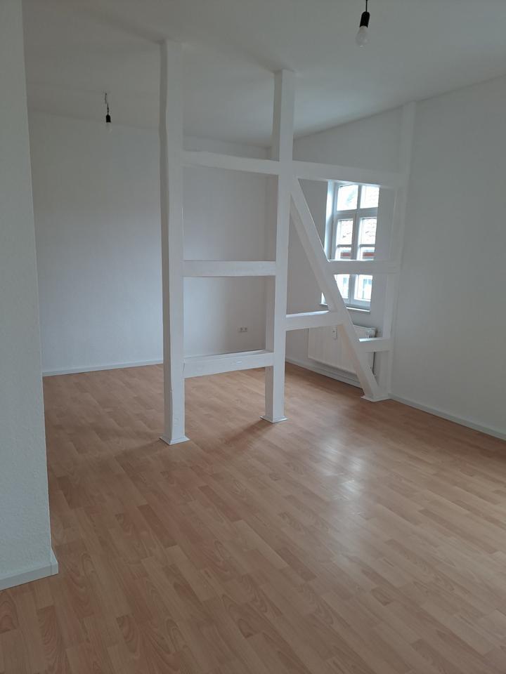Küche und Bad sind gefliest, der Wohn-und Schlafraum wurde mit Laminat ausgestattet. Das Wohnzimmer ist durch einen weiß gestrichenen Holzbalken unterteilt, sodass es sich wunderbr als Wohn- und Esszimmer eignet.