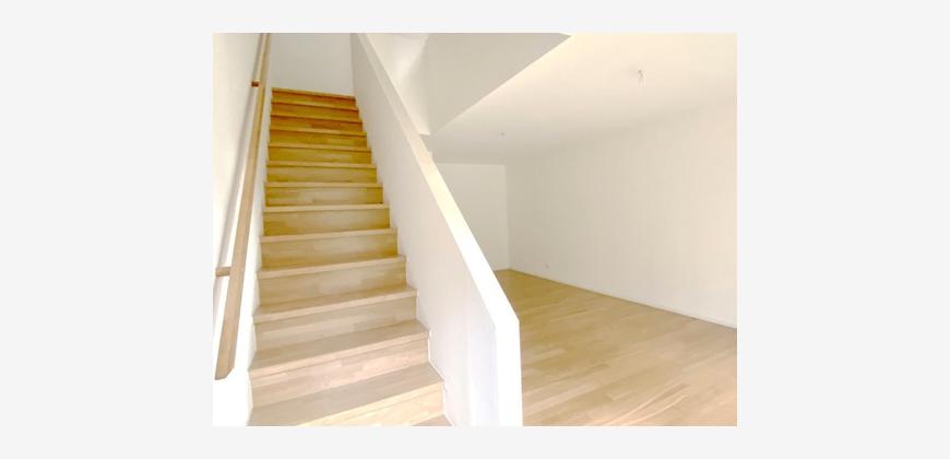 Im Erdgeschoss erwartet Sie ein großzügiger, offener Wohnbereich, der durch seine Weitläufigkeit und Helligkeit besticht. Hier haben Sie ausreichend Platz für gesellige Abende mit Freunden und Familie. Die angeschlossene Terrasse ermöglicht entspannte Momente im Freien und lädt dazu ein, die Sonnenstunden bis in den Abend hinein zu genießen. Ein weiterer Abstellraum für Sitzpolster ist ebenfalls vorhanden. Hochwertiger Parkettboden in allen Wohnräumen unterstreicht den modernen und zugleich gemütlichen Charakter der Wohnung.