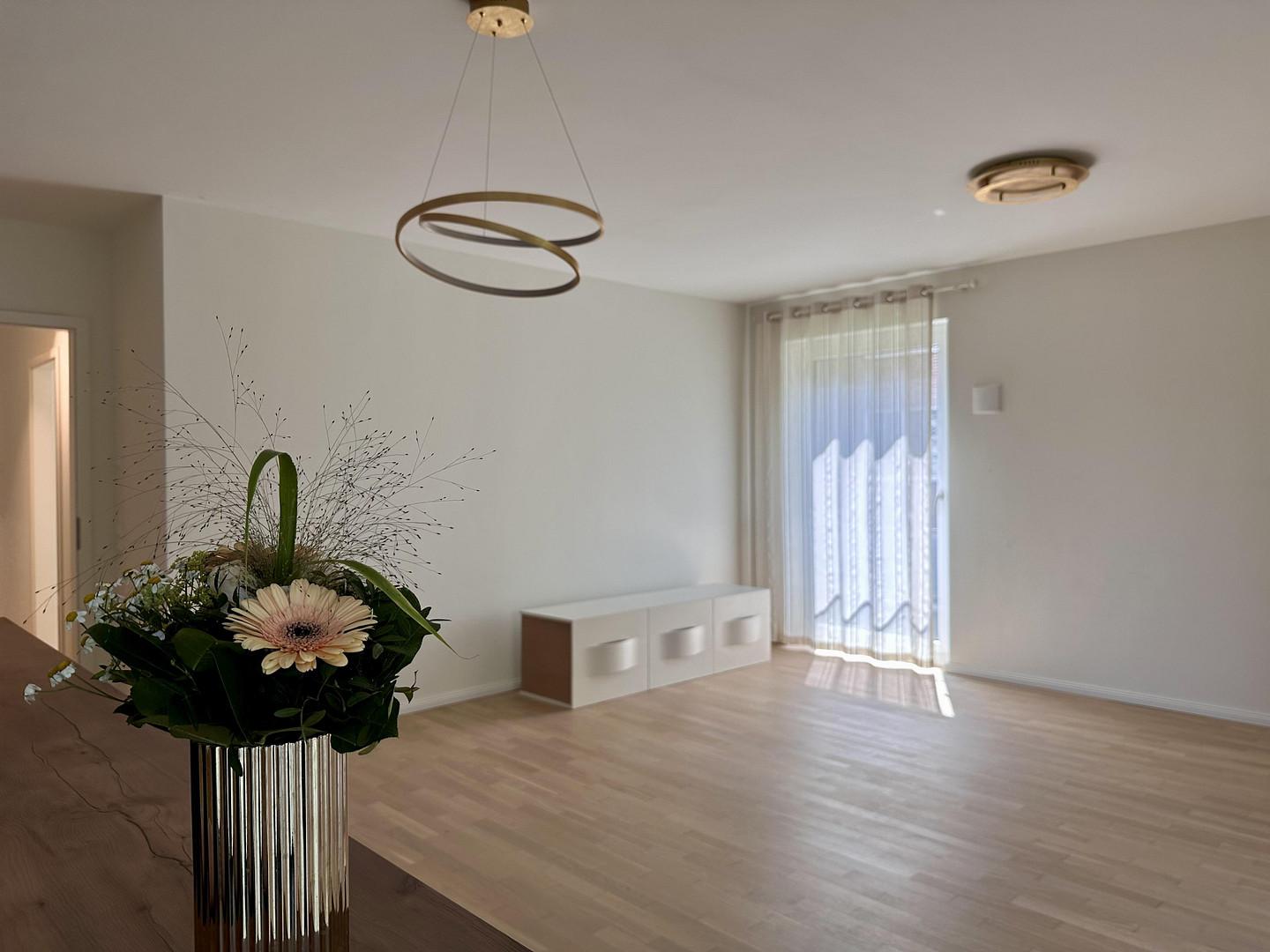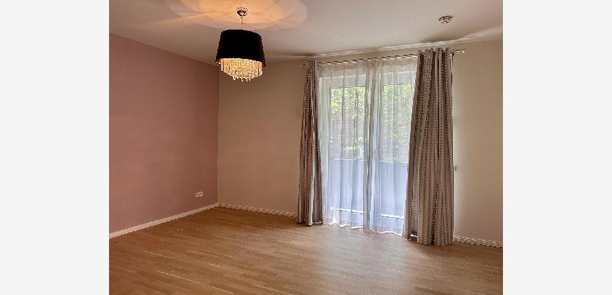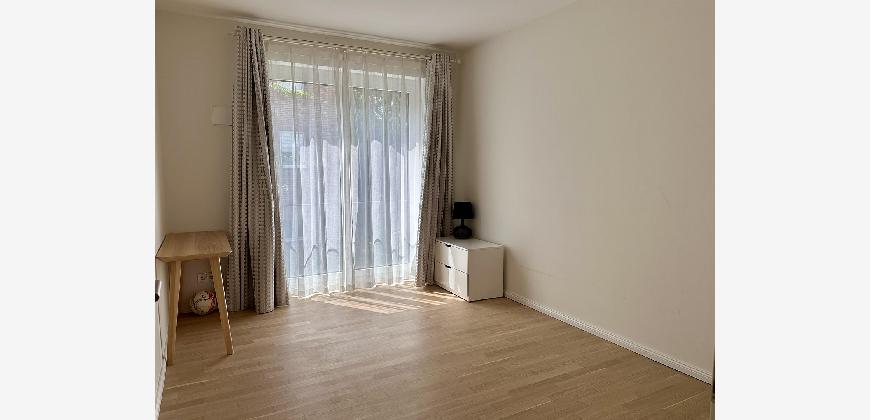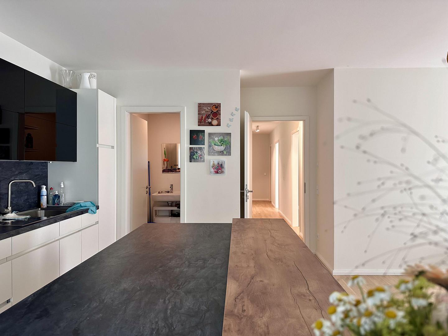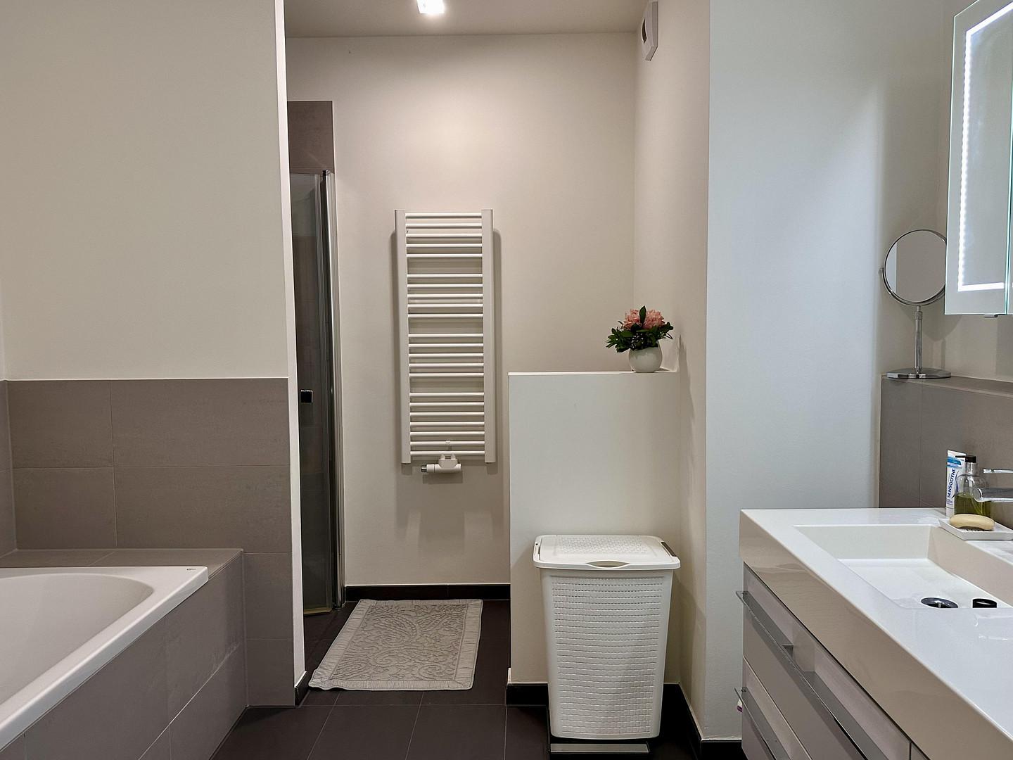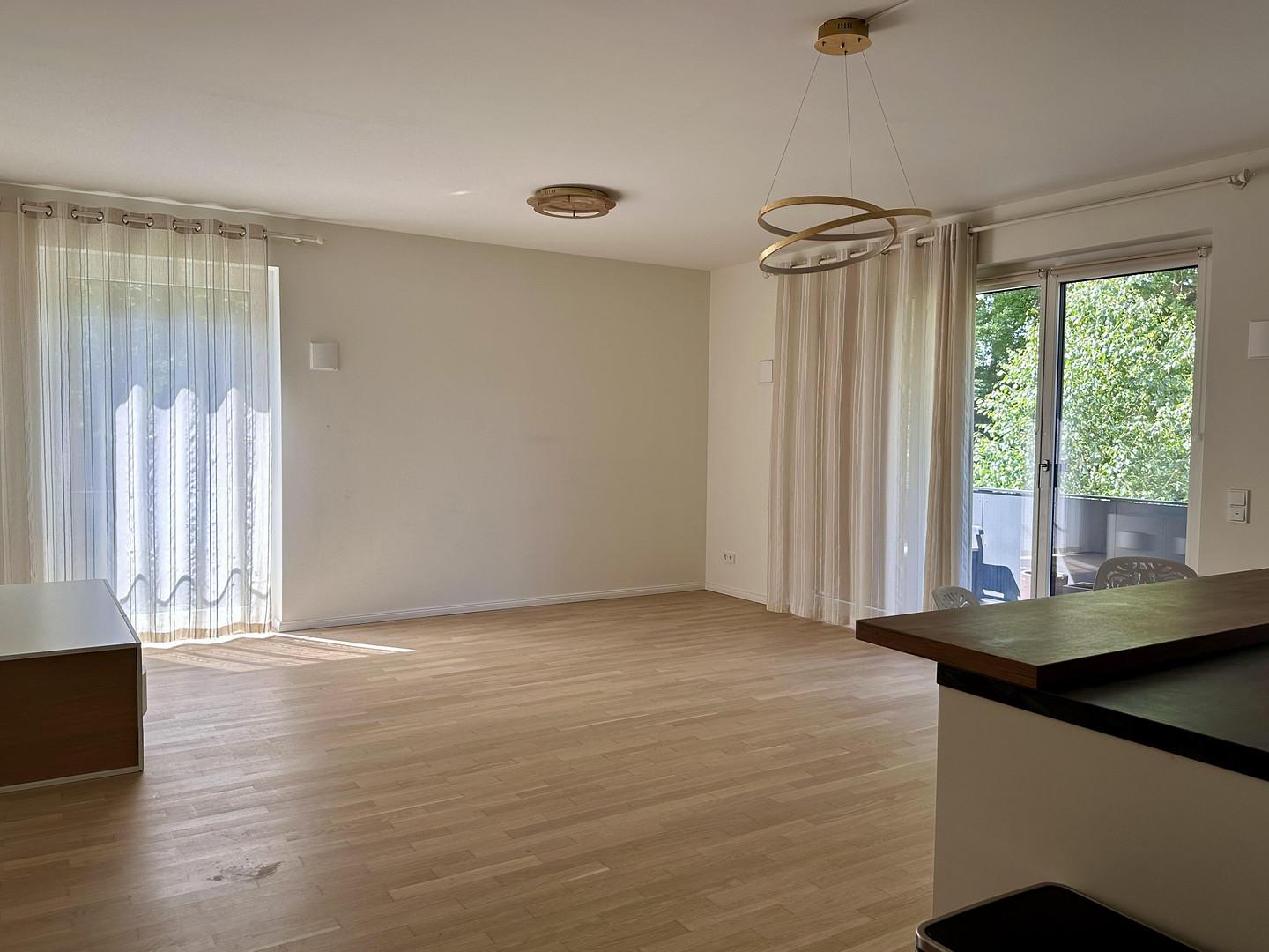 Die Wohnung ist hochwertig ausgestattet: Parkettboden, Fußbodenheizung in allen Räumen, Einbauküche mit Miele-Geräten, Badezimmer mit Bademöbeln, Spiegelschrank mit Beleuchtung.