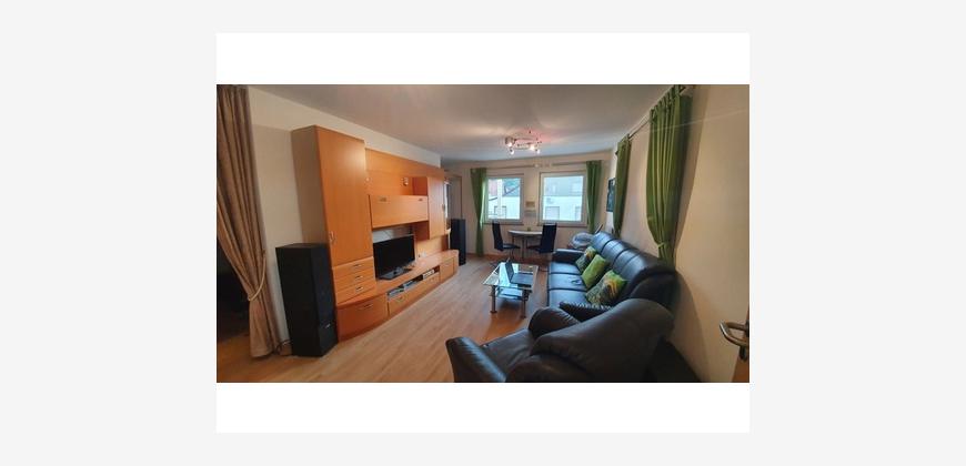 Mit dem Fahrstuhl gelangen sie in diese schöne möblierte Wohnung, die sich im 1. OG eines 2013 erbauten Hauses mit 19 Wohnungen befindet. Es erwarten sie ein schönes großes Wohnzimmer mit Balkon und ein kleines Schlafzimmer. Die abgeschlossene Küche ist modern und voll ausgestattet und im Mietpreis bereits inbegriffenen. Das Bad ist hell gefliest und mit einer großen barrierefreien Dusche ausgestattet. Die Fußböden sind mit dem modernen Bodenbelag Vinyl ausgelegt. Im Untergeschoss steht ihnen ein Kellerraum, Wasch- und Trockenraum zur Verfügung.