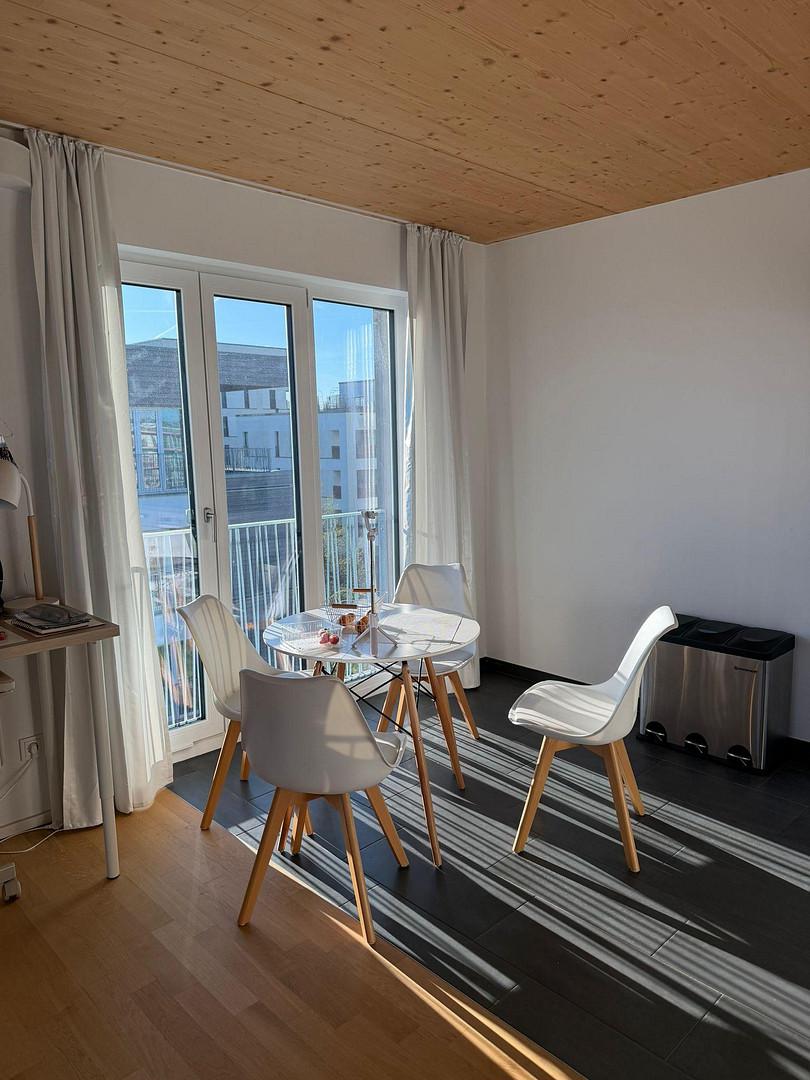 Neben Wohnzimmer mit offener Küche finden Sie einen großzügigen Balkon mit hervorragender Aussicht bis hin zur Feste Würzburg.