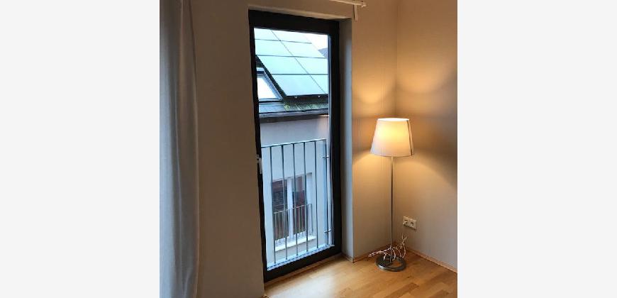 The appartment house is part of a 3-building complex erected in 2010 and is located on the quiet upper north end of well-known vibrant Berger Strasse, famous for its bars, the irish pub and typical local apple cider restaurants which are just 2 mins walk down the street. Underground stations are with-in 5 mins walking distance. The new ECB building can be reached within 4 train stops, or by bicycle in 15 mins only. The banking district also is similarly close.