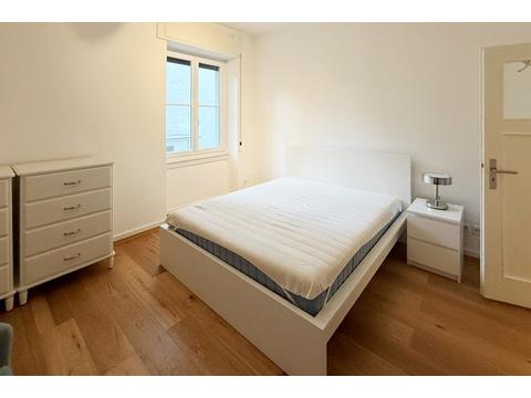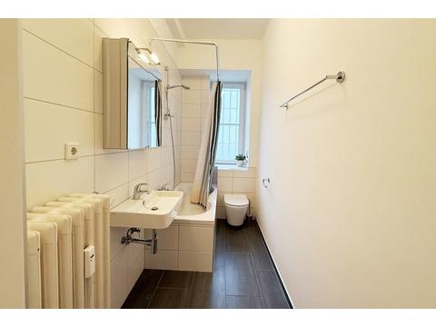 Die Wohnung wurde im Jahr 2016 umfassend modernisiert und präsentiert sich heute in einem ausgezeichneten, äußerst gepflegten Zustand. Großzügige Fensterflächen sorgen in beiden Wohnräumen für eine helle und freundliche Atmosphäre. Die Räume sind geschmackvoll möbliert und bieten vielseitige Nutzungsmöglichkeiten – ideal als stilvolles Zuhause auf Zeit oder komfortabler Lebensmittelpunkt im Herzen Frankfurts.