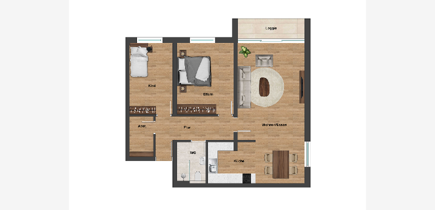Highlights der Wohnung sind das moderne Badezimmer und die Marken-Einbauküche inkl. Waschtrockner.