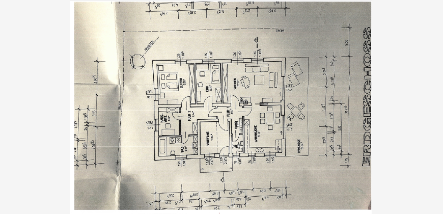Das Wohnhaus 1 (Weiß) Baujahr 1936 weitere Anbauten/Renovierungen 1954, 1969, 1996, 2000 verfügt über ein Teilkeller (mit Heizungsanlage) EG und OG mit mehrere Zimmern, im EG eine große Garage, und Nebenräumen