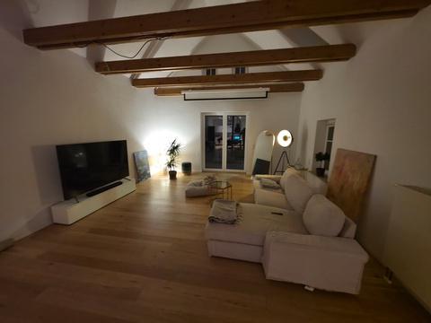 Im Wohnraum befindet sich eine Schlafgalerie, ein weiteres Zimmer kann als Büro oder Ankleidezimmer genutzt werden. Eine Einbauküche ist vorhanden, der Mietzins beträgt 50 €/mtl. und ist in der Kaltmiete mit einberechnet.