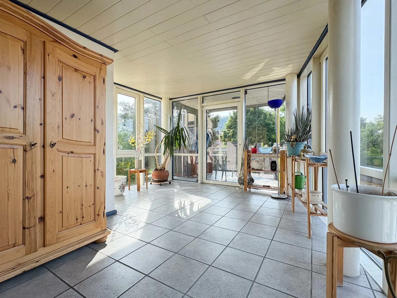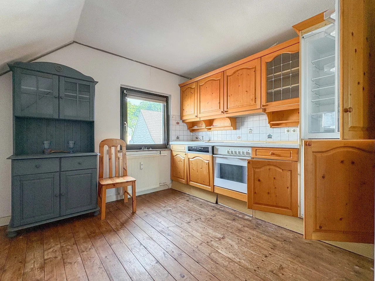 Das Haus präsentiert sich in einem soliden Zustand und überzeugt mit einem gut durchdachten Wohnkonzept sowie einem besonderen Highlight: dem großzügigen, nachträglich errichteten Wintergarten mit Balkon, der sich über alle drei Etagen erstreckt. Die Wohnungen im Erdgeschoss und im 1. Obergeschoss sind baugleich aufgeteilt und verfügen jeweils über einen durchdachten Grundriss. Im Dachgeschoss stehen insgesamt drei Zimmer, eine Küche sowie ein Duschbad zur Verfügung – ideal als weitere Wohneinheit für Familienangehörige oder zur Vermietung.