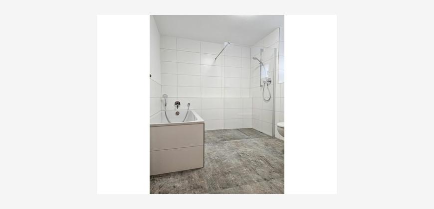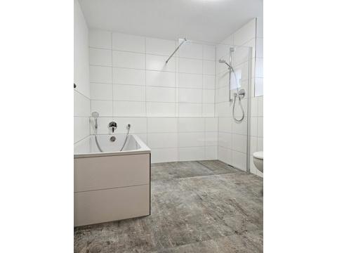 *modernisiertes Bad mit Badewanne, Dusche und zusätzlicher Fußbodenheizung