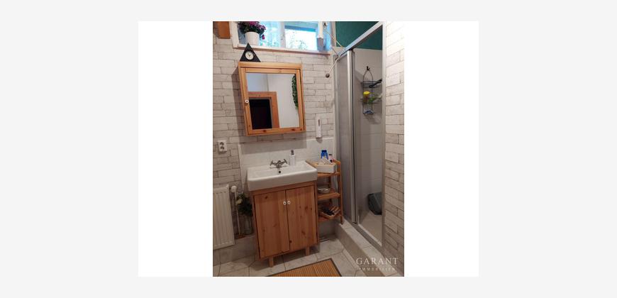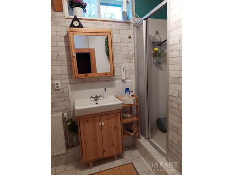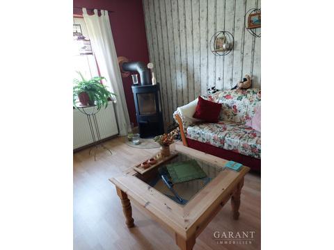 Der Bungalow besteht aus drei Wohn- bzw. Schlafräumen, einem Duschbad mit Toilette, einer Küche, zwei Fluren und zwei Kammern. Außerdem verwandelt sich die überdachte Terrasse im Sommer zu einem zweiten Wohnzimmer. Das Gebäude aus den 1940er-Jahren ist teilweise unterkellert und bietet dort Platz für die Ölheizung und drei Öltanks. Die nur einen Steinwurf entfernte Scheune bietet eine Nutzfläche von ca. 200 qm. Sie enthält zwei Wohnräume, ein Duschbad und einen Flur. Der Rest wird als Lagerfläche genutzt.