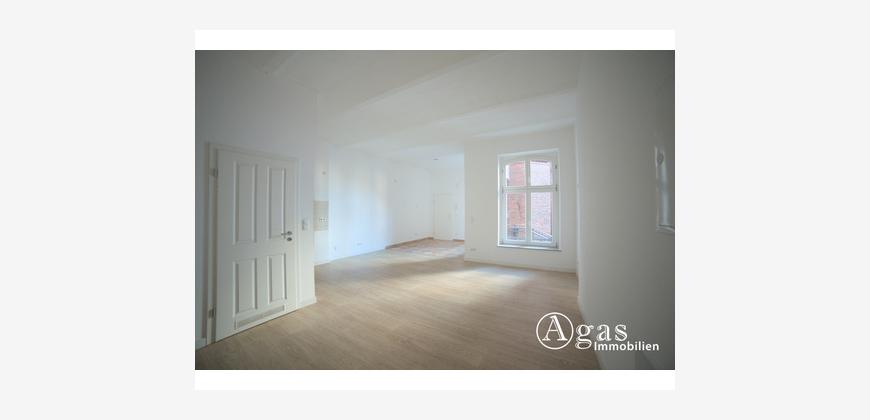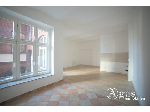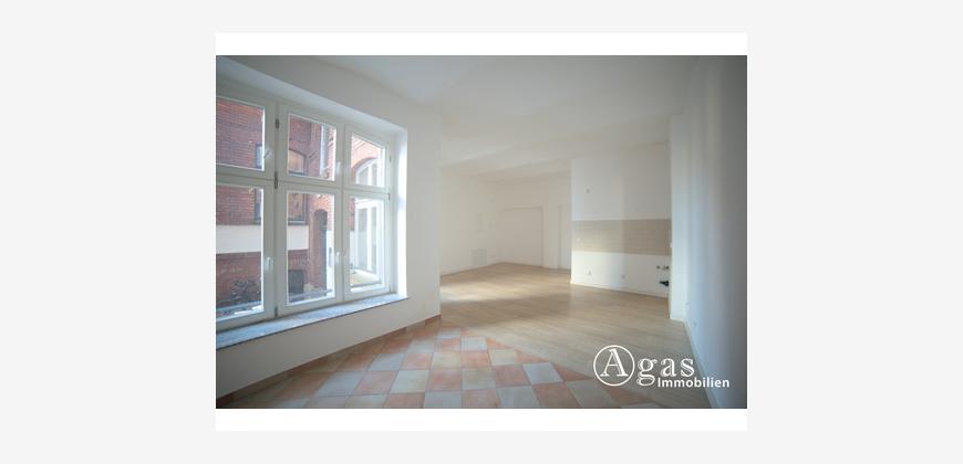 Die Wohnung liegt im Hochparterre eines charmanten Backsteinhauses und überzeugt durch ihre großen Fenster, die viel Tageslicht in den Wohnraum lassen.