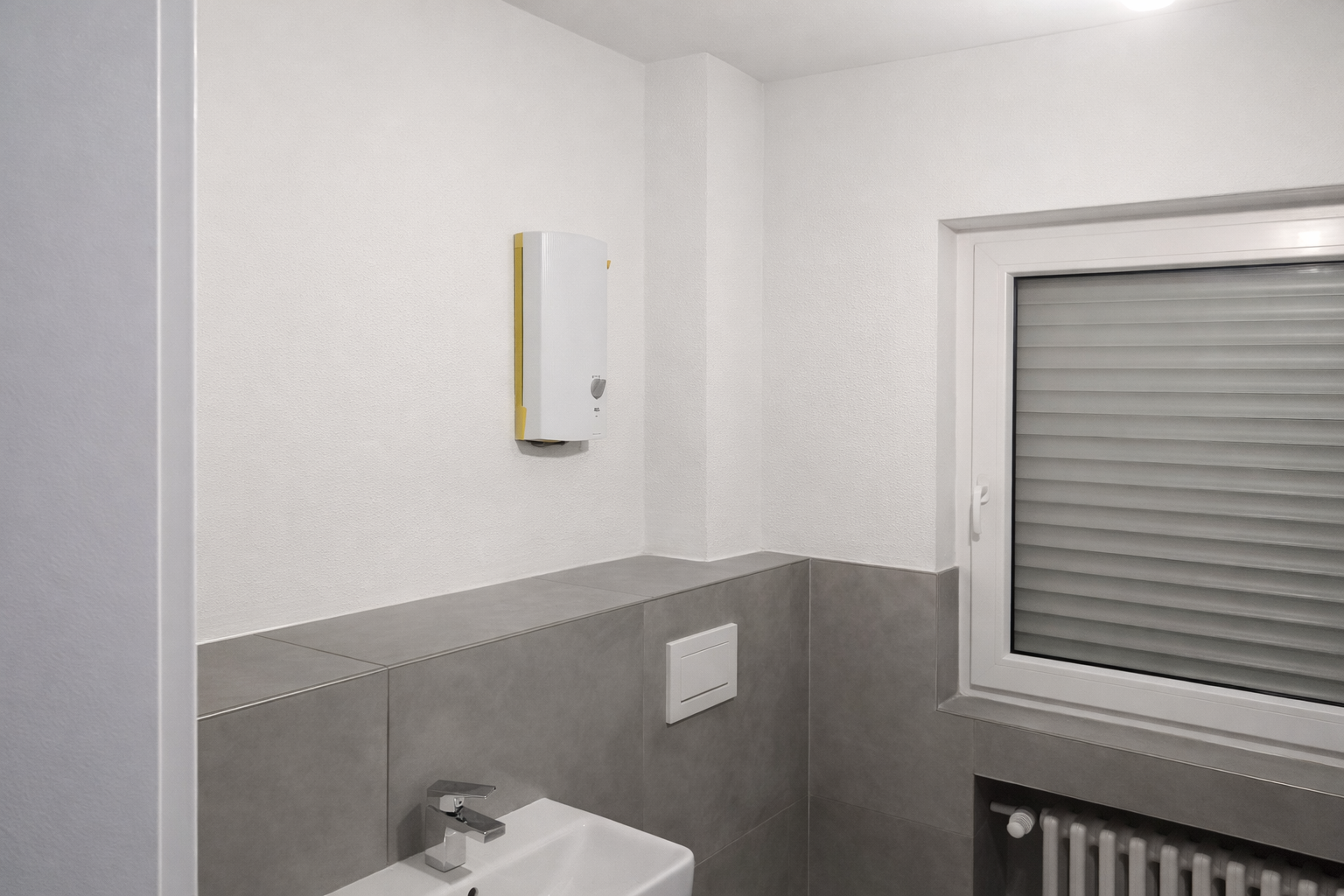 Die Beheizung der Räume erfolgt über eine zentrale Heizungsanlage, die Warmwasserversorgung über einen Durchlauferhitzer. Die Sanierung der Heizungsanlage ist für dieses Frühjahr / diesen Sommer vorgesehen.