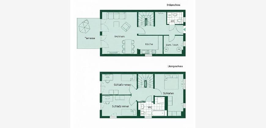 Diese moderne und energieeffiziente Doppelhaushälfte bietet ein durchdachtes Wohnkonzept, hochwertige Materialien und ein ideales Umfeld für Familien. Die Südausrichtung des Hauses sorgt für lichtdurchflutete Räume.