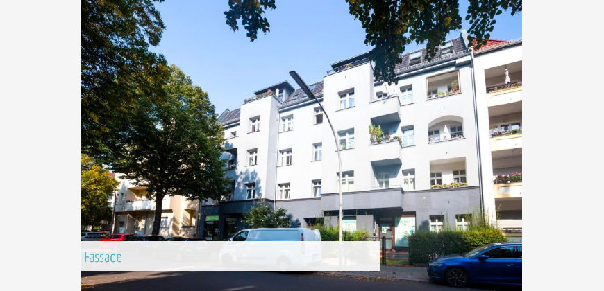 Die Wohnung liegt in der Kurfürstenstraße 73, 12105 Berlin-Mariendorf, in einer ruhigen und grünen Seitenstraße mit ansehnlichen Altbauten.