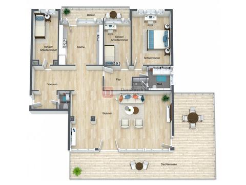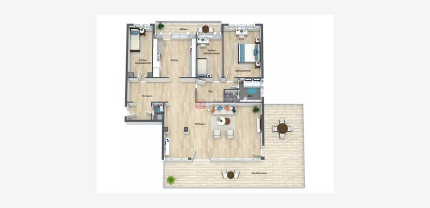 Ausstattung• Sehr große Süd-West-Dachterrasse über zwei Gebäudeseiten mit Skylineblick