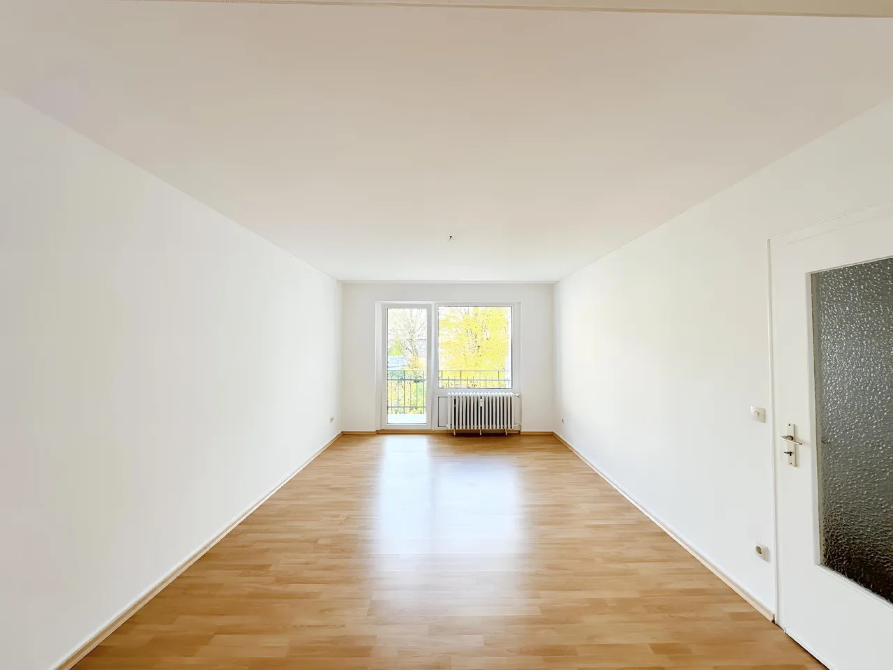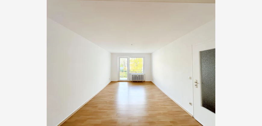 Auf etwa 107 m² Wohnfläche verteilen sich ein großes Wohn- und Esszimmer, ein Schlafzimmer, ein Kinder-/Arbeits- oder Gästezimmer, eine Diele, ein separates WC, ein Wannenbad und zwei Balkone.