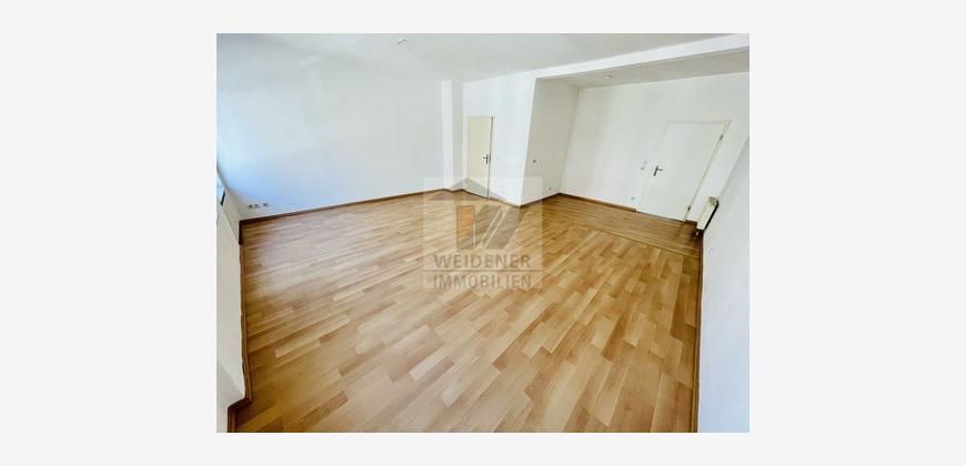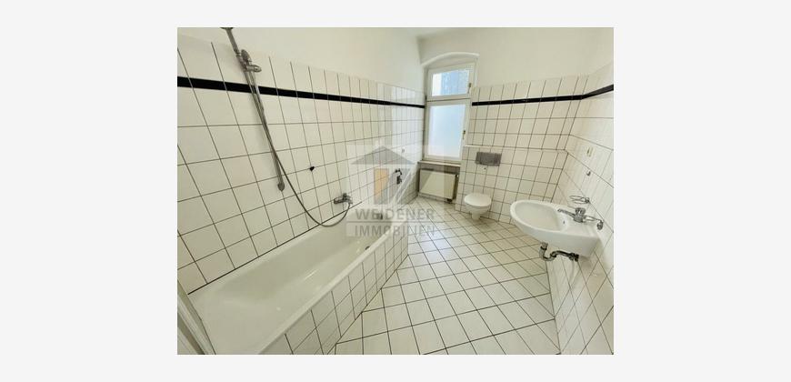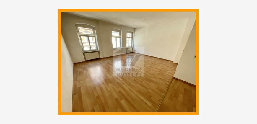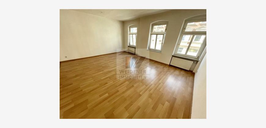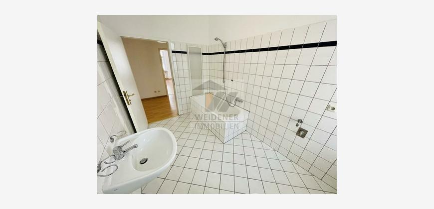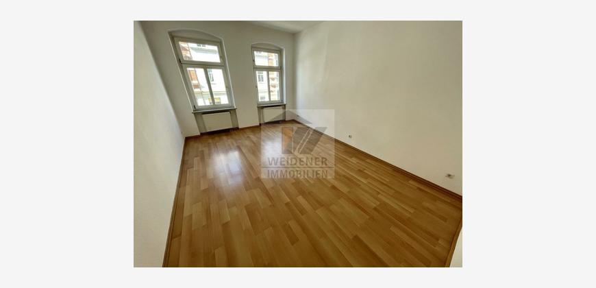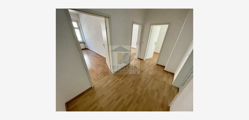 Eine schicke 3-Raum-Wohnung im 1. Obergeschoss in einem sanierten Mehrfamilienhaus mit modernem Raumkonzept, großes Wohnzimmer mit Zugang zu der Küche mit Fenster, Kinderzimmer mit Zugang zu dem Balkon, Bad mit Fenster, Wanne und WM-Anschluss. Der Wohnung zugeordnet ist ein Kellerraum.