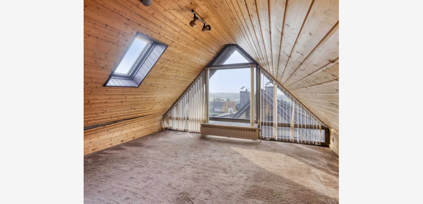Willkommen in dieser charmanten Doppelhaushälfte ca. aus dem Baujahr 1976, die Ihnen auf mehreren Ebenen großzügige Wohn- und Nutzungsmöglichkeiten bietet. Mit insgesamt fünf Zimmern und einer durchdachten Raumaufteilung eignet sich das Haus ideal für Familien. Durch die Hanglage befindet sich auf der Eingangsebene der Heizungsraum, zwei Hobbyräume, ein Lagerraum, ein Duschbad mit Waschmaschinenanschluss, sowie ein direkter Zugang zur Garage. Das Gartengeschoss überzeugt mit einem großzügigen, offen gestalteten Wohn- und Essbereich, der durch einen offenen Kamin ein behagliches Wohnambiente schafft. Von hier aus haben Sie Zugang zum Balkon. Die angrenzende offene Küche fügt sich harmonisch in das Raumkonzept ein und bietet den Zugang zur Terrasse. Der schön angelegte Garten mit Gartenhaus lädt zum Entspannen und Verweilen ein. Im Obergeschoss befinden sich drei Zimmer sowie ein Tageslichtbad mit Dusche und Badewanne. Das Dachgeschoss beherbergt einen gemütlichen Hobbyraum, der durch den herrlichen Weitblick ins Grüne besticht - ideal als Rückzugsort oder Homeoffice. Ob als gemütliches Familienhaus oder als Kombination aus Wohnen und Arbeiten - diese gepflegte Doppelhaushälfte bietet zahlreiche Möglichkeiten, individuelle Wohnideen umzusetzen. *Die oben aufgeführte Wohnfläche von ca. 134 m² verteilt sich folgendermaßen: 119,44 m² genehmigte Wohnfläche im Erd- und Obergeschoss sowie der Eingangsebene, zzgl. ca. 15 m² wohnliche Nutzfläche in der Eingangsebene Energieausweis: Bedarfsausweis gültig von: 17.05.2023; Endenergiebedarf Wärme: 170 kWh/(m²a); wesentliche Energieträger Heizung: Befeuerung Öl; Energieeffizienzklasse: F; Baujahr: 1975