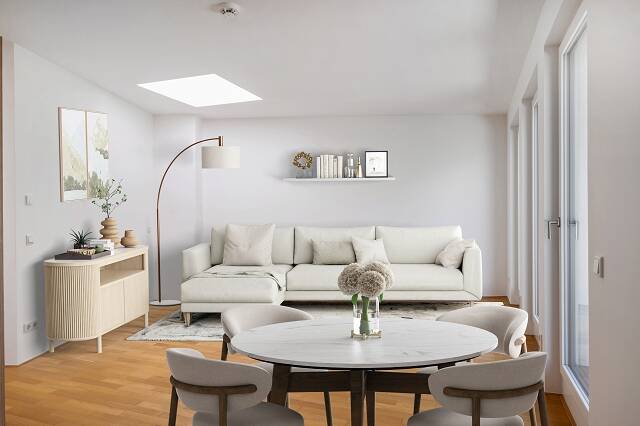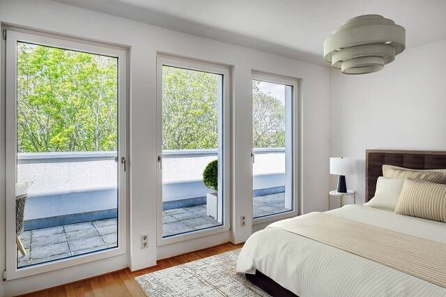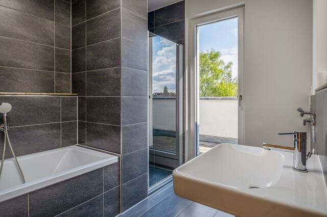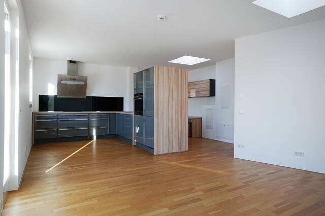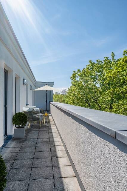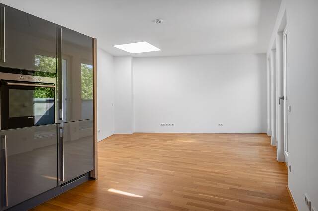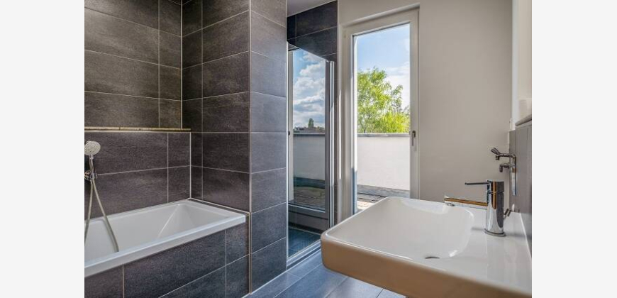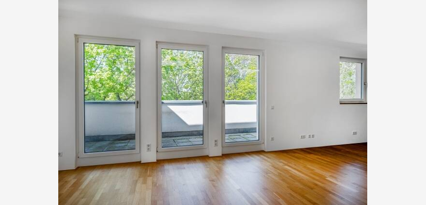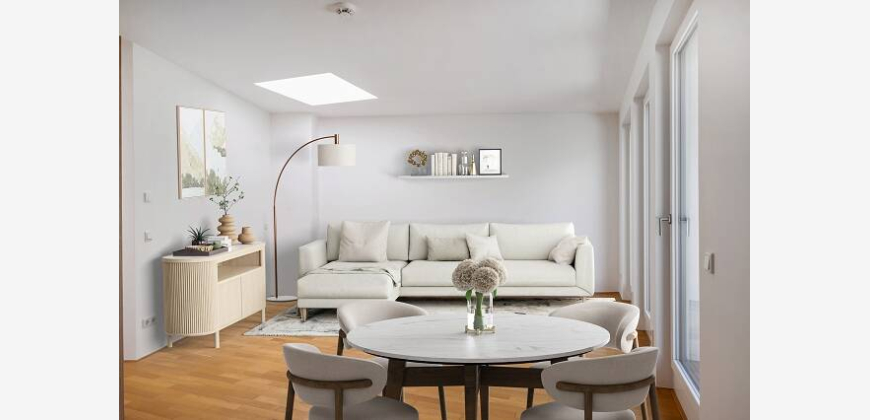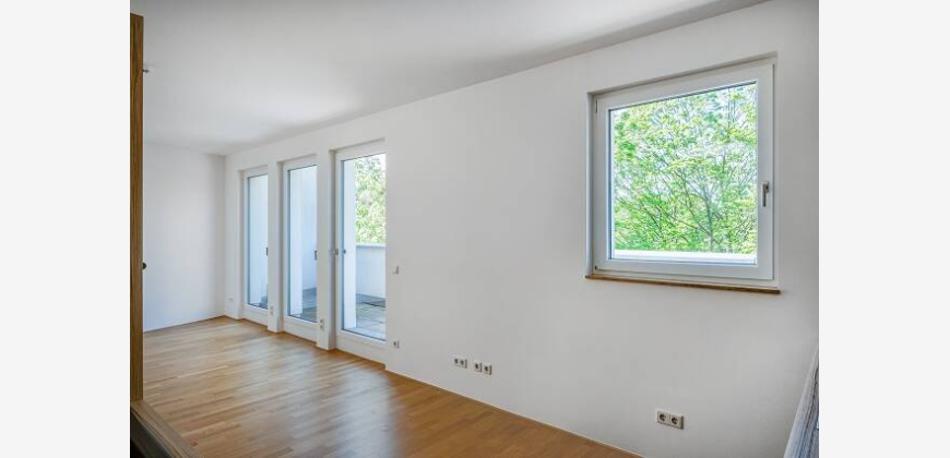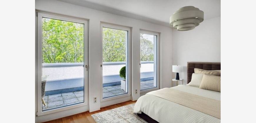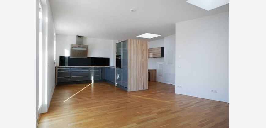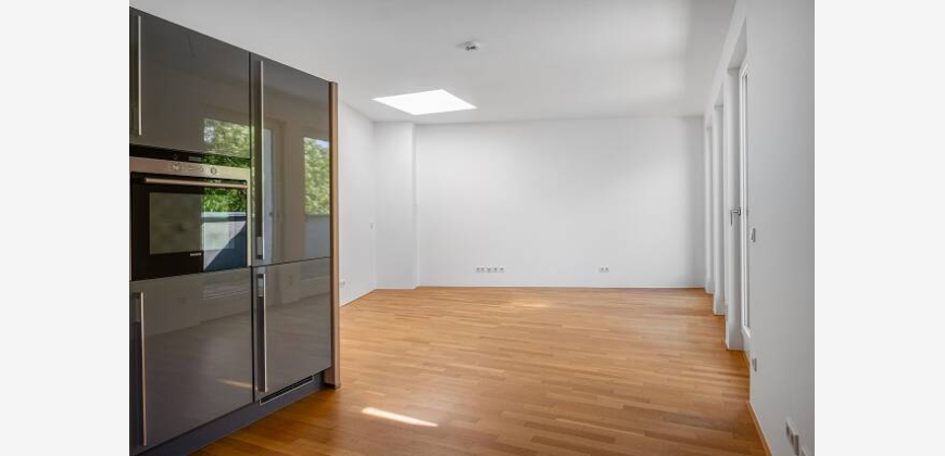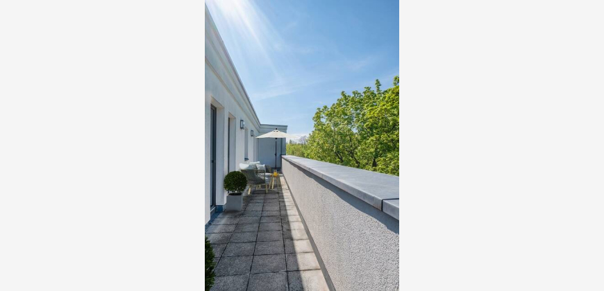 Diese charmante Wohnung befindet sich in einem einmaligen Neubau, ausgezeichnet mit hoher Qualität. Absolute Highlights der Wohnung sind die umlaufende, weitgehend uneinsehbare, ca. 47 Quadratmeter große Dachterrasse mit einem atemberaubenden Ausblick auf einen idyllischen kleinen See sowie die hochwertige Ausstattung der gesamten Wohnung. Einzigartige Lichtachsen werden durch die Oberlichter kreiert und bilden in Kombination mit den bodentiefen Fenstern ein helles Wohnerlebnis. In dem offen gestalteten Wohn- und Essbereich besticht eine maßangefertigte Marken-Einbauküche mit elektrischen Geräten der Marken Siemens und Gutmann. In die geschmackvolle Gestaltung der Wohnküche ist die Ausstattung des Essbereichs integriert. Das Bad punktet mit stilvollen Elementen in Naturstein und edler Keramik. Abgerundet wird das Wohnkonzept durch einen Tiefgaragenstellplatz, einem Kelleranteil, einem Fahrradstellplatz und Aufzug. Dieses Immobilienangebot lässt keine Wünsche offen.