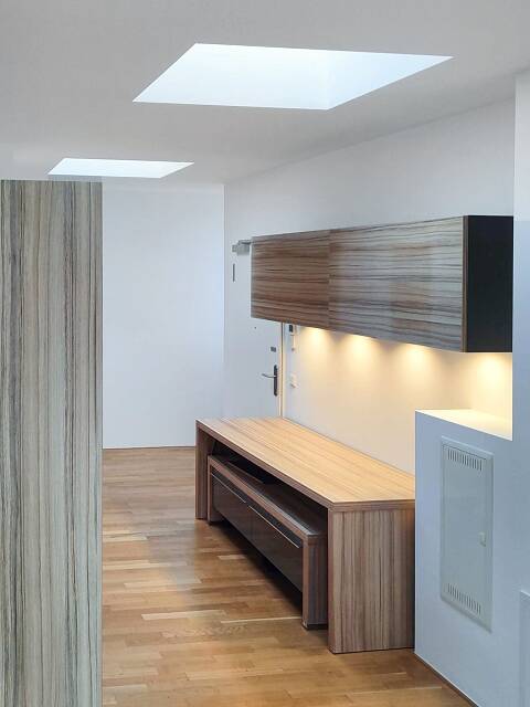 .Maßangefertigte Einbaumöbel im Küchen- und Eingangsbereich