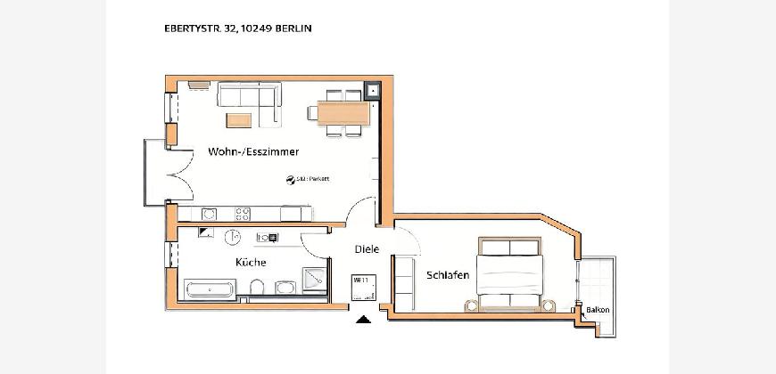 Diese frisch sanierte 2-Zimmer-Wohnung in der beliebten Ebertystraße 32 bietet modernen Wohnkomfort in ruhiger und zugleich hervorragend angebundener Lage von Berlin-Friedrichshain. Eingebettet in eine charmante Kiezstruktur mit grünen Straßen, kleinen Cafés und liebevoll geführten Geschäften verbindet die Wohnung das lebendige Lebensgefühl des Bezirks mit angenehmer Zurückgezogenheit.