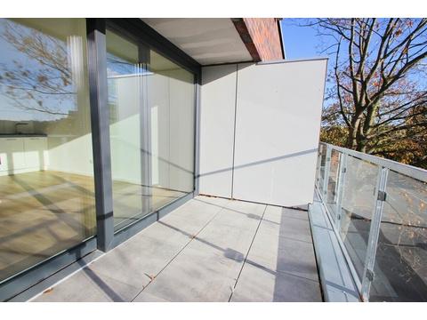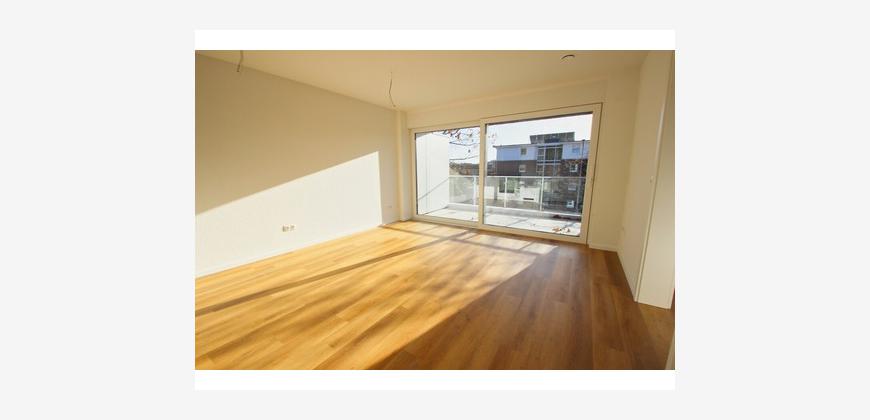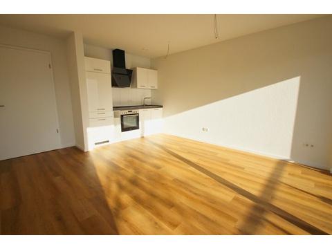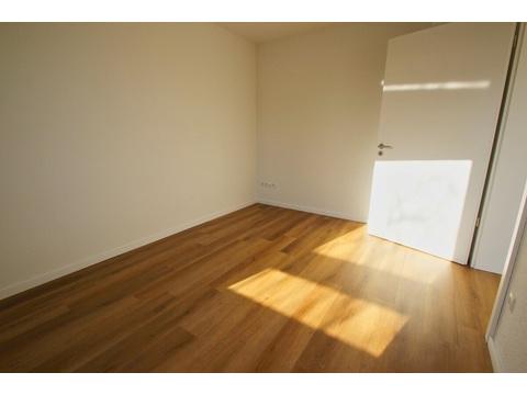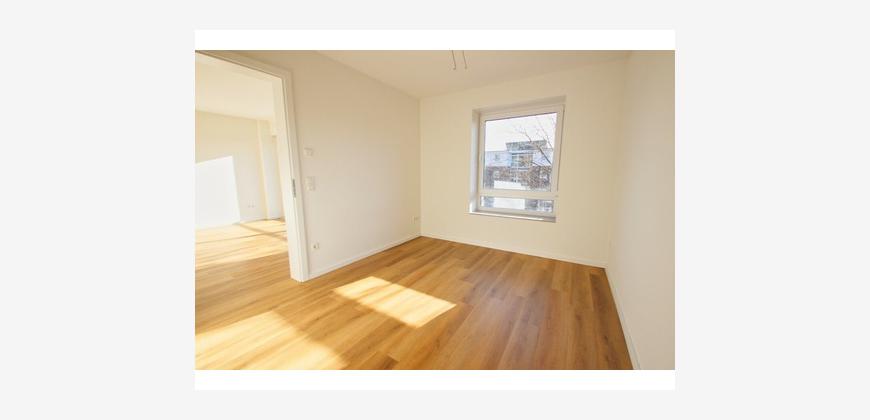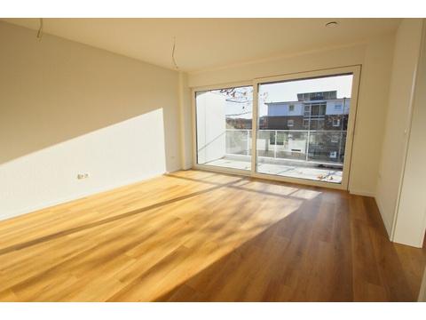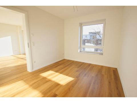Das Schlafzimmer ist gut geschnitten und bietet ausreichend Stellfläche. Herzstück der Wohnung ist der offene Wohn- und Küchenbereich, der mit einer hochwertigen Einbauküche inklusive Elektrogeräten ausgestattet ist. Große Fensterelemente sorgen für viel Licht und schaffen eine angenehme Wohnatmosphäre. Von hier aus gelangt man auf den sonnigen Loggiabalkon mit Südausrichtung.