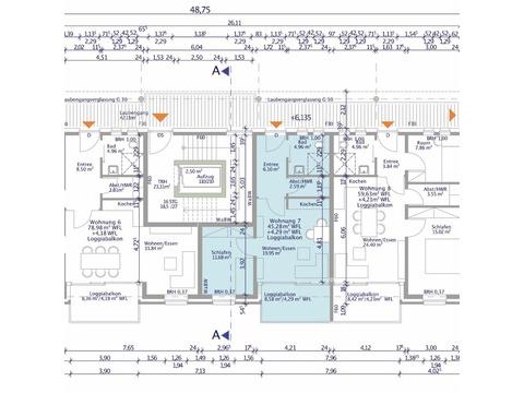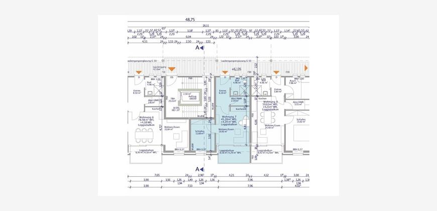 Die Wohnung Nr. 7 befindet sich im 2. Obergeschoss und bietet mit ca. 49,57 m² Wohnfläche den idealen Raum für ein bis zwei Personen. Der Zugang erfolgt über das gepflegte Treppenhaus oder bequem mit dem Aufzug. Von dort aus gelangt man über einen Laubengang zur Wohnung.