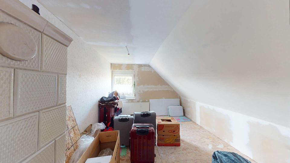 Das Dachgeschoss verfügt derzeit über 4 etwa gleich große Zimmer, deren Grundrisse aber ohne großen Aufwand auch in 2 oder 3 größere Räume geändert werden könnten.