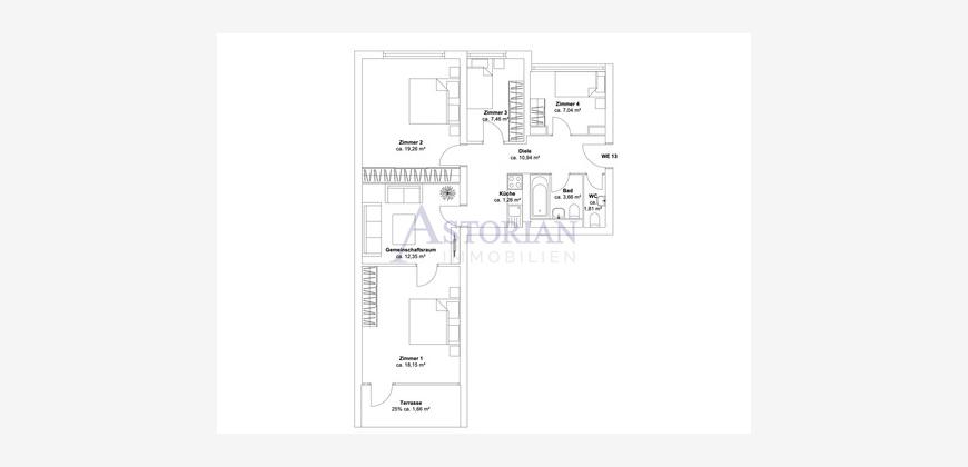 Ausstattung+ 88 m² Wohnfläche, 4 OG.