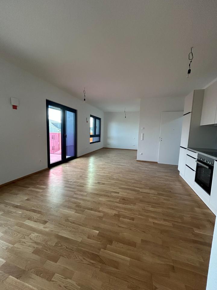 Große Panoramafenster, die viel Licht in die Wohnung lassen und eine visuelle Verbindung nach außen schaffen. Ein hochwertiger Echtholzparkettboden mit Fußbodenheizung schaffen Wohnqualität. Eine offene Einbauküche, die nahtlos in den Wohnbereich übergeht ist mit modernen Geräten ausgestattet. Das Badezimmer weißt ein zeitloses Design mit gehobener Ausstattung und teils bodengleicher Dusche auf.