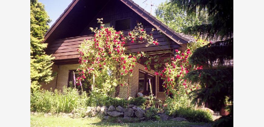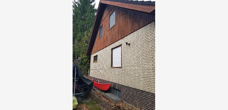 Haus mit 9 Zimmern, 2 Küchen, 2 Bädern und 2 WCs, teilunterkellert (86%), mit großem Grundstück (2179 m²) in attraktiver, ruhiger Wohnlage in Celle-Wietzenbruch (Flootlock) zu verkaufen. Haacke-Fertighaus, Baujahr 1978. Gasheizung mit Energieverbrauch in Klasse D (A+ bis H) nach Energieausweis.