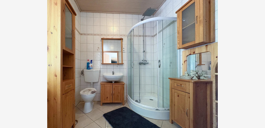 Dieses großzügige Einfamilienhaus bietet mit drei Schlafzimmern im Haupthaus komfortable Wohnverhältnisse und eignet sich ideal für einen 3- bis 4-Personenhaushalt. Die durchdachte Raumaufteilung schafft ein angenehmes Wohnumfeld und lässt sich flexibel an individuelle Bedürfnisse anpassen. Ein zusätzliches Badezimmer mit bodentiefer Dusche und moderner Whirlpool-Badewanne erhöht den Wohnkomfort und unterstreicht die Funktionalität des Hauses.