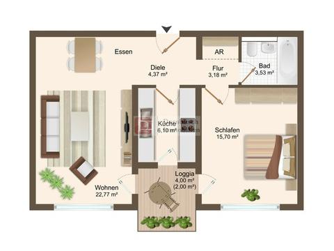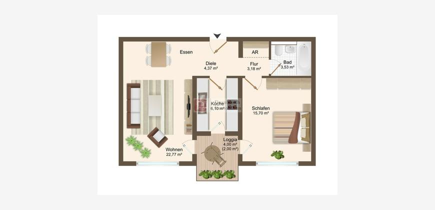 Sie überzeugt auf einer Wohnfläche von ca. 58 Quadratmetern durch Helligkeit und einer angenehmen Wohnatmosphäre.