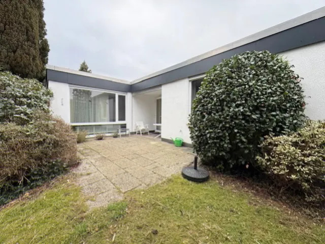 Dieser charmante Bungalow aus dem Baujahr 1962 überzeugt mit einer Wohnfläche von ca. 124 m² und einer sehr durchdachten, familienfreundlichen Raumaufteilung. Das Haus bietet komfortables Wohnen auf einer Ebene und eignet sich ideal für Paare, Familien oder auch als großzügiges Zuhause für das Wohnen im Alter. Die Besonderheit stellt hier die großzügige Nutzfläche im Untergeschoss mit ca. 119 m² dar. Auch die Grundstücksgröße von 689 m² hebt sich wohltuend von den heutigen oft sehr klein geschnittenen Grundstücken ab. Das Haus liegt am Ende einer Sackgasse, somit sehr ruhig. Ein großzügiges helles Entrée empfängt Sie auf angenehme Weise. Das Gäste-WC im Eingangsbereich zeigt sich mit hellen Fliesen und einem Fenster. Von der Diele aus eröffnet sich der zentrale Lebensmittelpunkt des Hauses: ein Essbereich mit direktem Zugang zur Terrasse und in den Garten ideal für gesellige Mahlzeiten und entspannte Stunden im Freien. Angrenzend liegt der Wohnbereich, der dank großer Fensterflächen lichtdurchflutet ist und eine freundliche, offene Atmosphäre schafft. Neben dem Wohn- und Essbereich befindet sich die großzügig geschnittene Küche, die funktional angeordnet ist und kurze Wege bietet. Von hier aus gelangen Sie in den Keller sowie über einen seitlichen weiteren Hauseingang direkt zur Garage. Ein echtes Highlight ist der separierte Schlaftrakt, der Privatsphäre und Ruhe schafft. Hier stehen vier mögliche Schlaf- bzw. Arbeitszimmer zur Verfügung, die drei möglichen Schlafräume mit Größen von ca. 11 m² bis ca. 16 m² sowie ein weiteres kleineres Arbeitszimmer. Zwei Bäder sorgen für zusätzlichen Komfort: ein Duschbad sowie ein Wannenbad, sodass auch im Familienalltag ausreichend Platz und Flexibilität gegeben sind. Ausreichend Nutzfläche bietet das Haus im Untergeschoss. Insgesamt findet man hier 5 Kellerräume, einen großen Hobbykeller mit Zugang zum Garten sowie den Heizungskeller mit dahinterliegendem Öltank. Auch der Kellerflur zeigt sich großzügig und bietet viel Unterstellmöglichkeiten. Die Garage, die sich direkt am Haus befindet, bietet Platz für Ihren PKW und ist besonders praktisch für Familien mit Kinderwagen oder Fahrrädern. Die direkte Anbindung der Garage an das Haus garantiert kurze Wege, vor allem bei schlechtem Wetter. FAZIT: Insgesamt präsentiert sich dieser Bungalow als solide und durchdacht strukturierte Immobilie mit vielen Nutzungsmöglichkeiten und einem attraktiven Grundriss, der Wohnen und Rückzug harmonisch miteinander verbindet. Lassen Sie sich bei einer Besichtigung von den Möglichkeiten und dem Potenzial dieser Immobilie persönlich überzeugen.