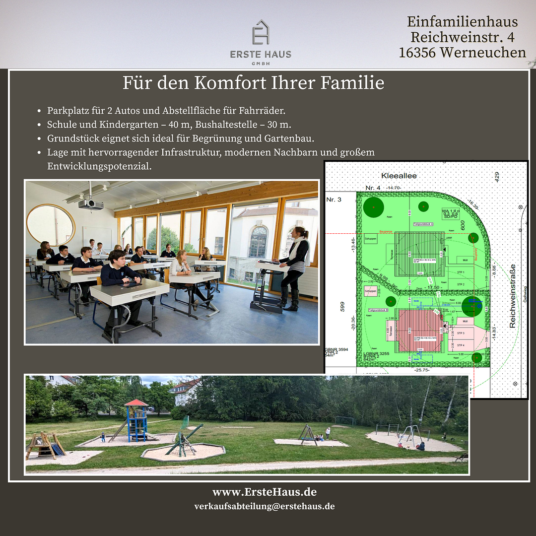 •Kitas, Grundschule und weiterführende Schulen im Ort